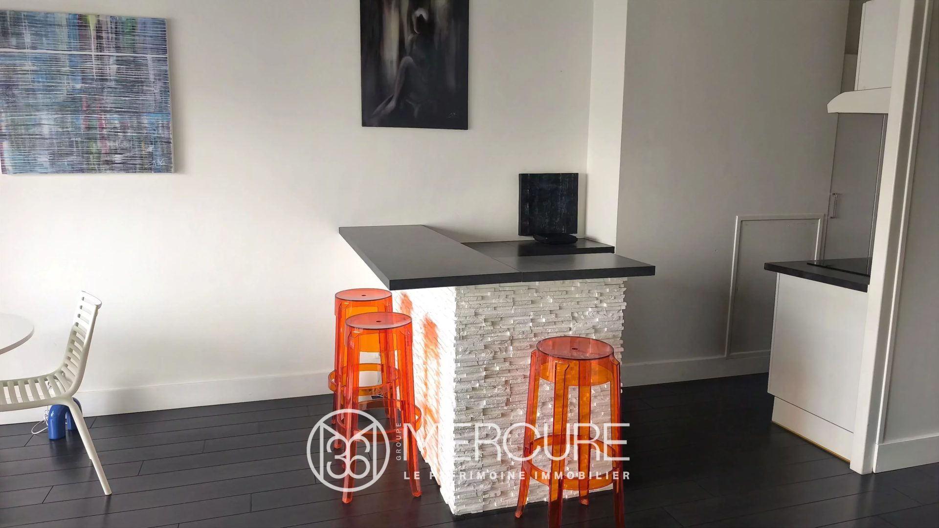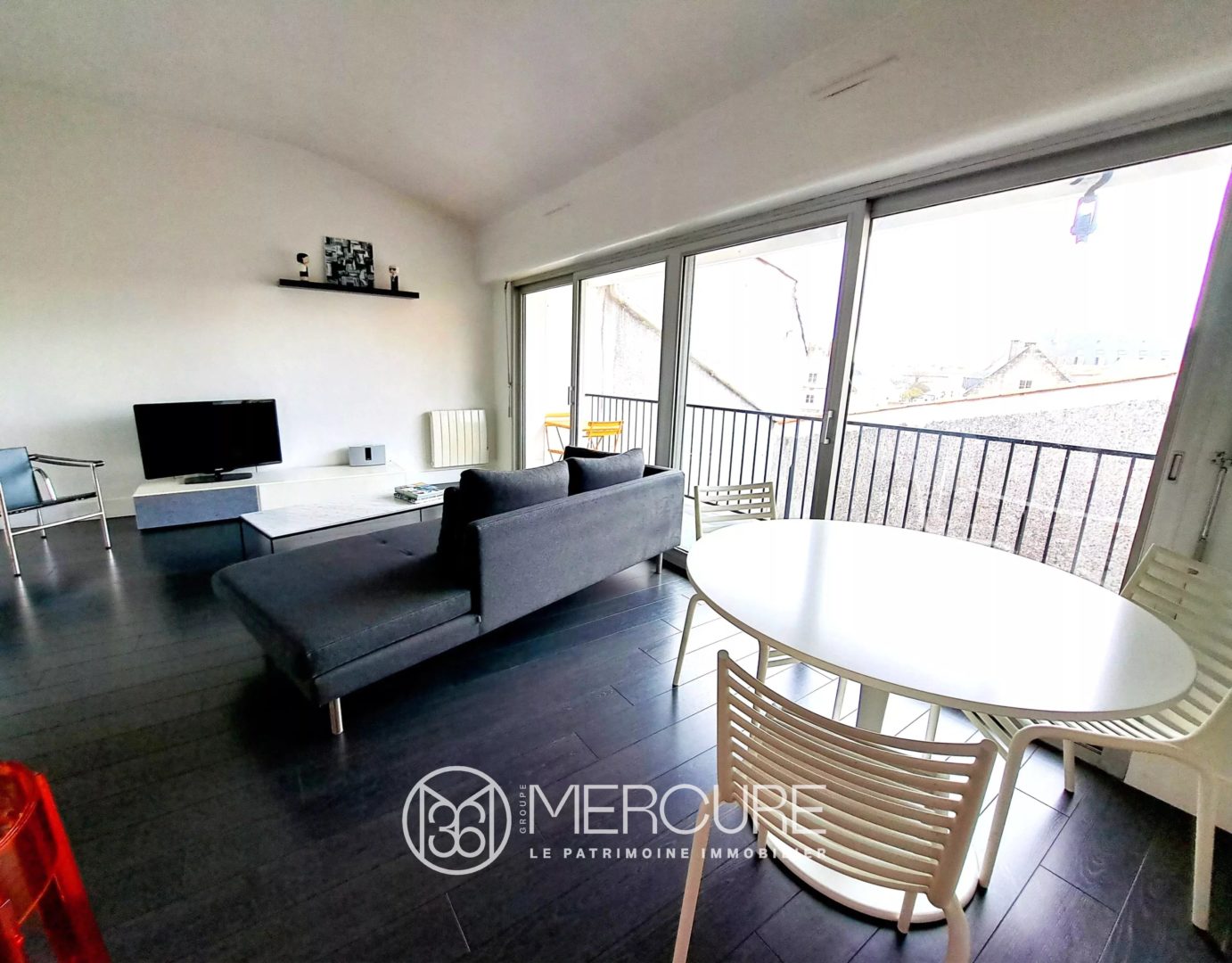L’appartement se compose d’un séjour lumineux de 31,5 m² ouvrant sur un balcon filant exposé Nord-Ouest, doté d’une cuisine semi-ouverte aménagée et entièrement équipée (plaque à induction, hotte, réfrigérateur/congélateur, lave-vaisselle). Un dégagement optimisant la circulation dessert l’espace nuit, comprenant une chambre avec fenêtre de toit, ainsi qu’un espace indépendant aménagé en dressing. Une salle d’eau récente complète l’ensemble, équipée d’une douche, d’un meuble vasque, de WC et d’un radiateur sèche serviettes.