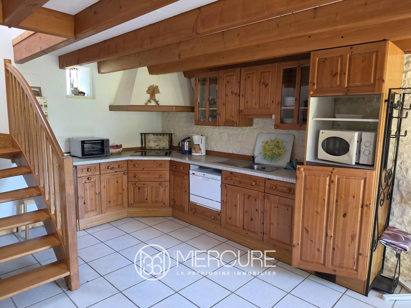 La maison d’habitation (env. 88 m²) offre une pièce de vie, une cuisine, une salle d’eau et deux chambres à l’étage.