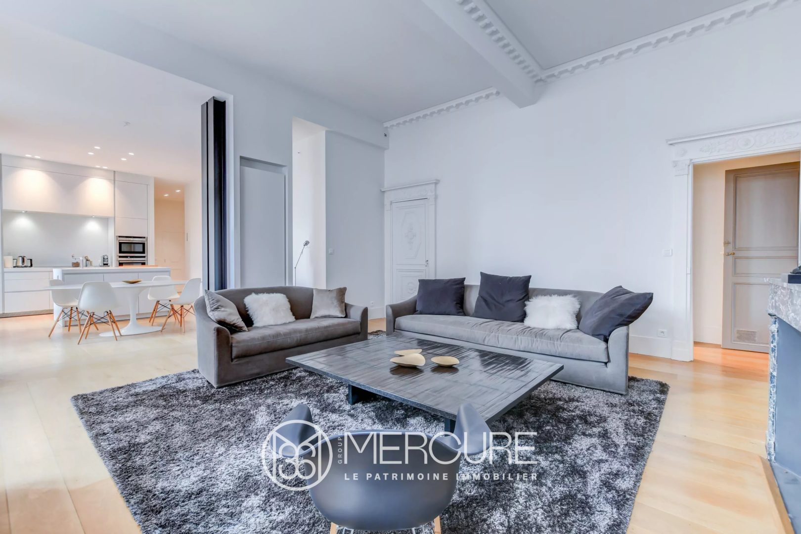 Au troisième étage d’un immeuble bourgeois avec ascenseur, superbe appartement de 135m² entièrement rénové par un architecte de renom. Très beau mélange d’ancien et de contemporain.