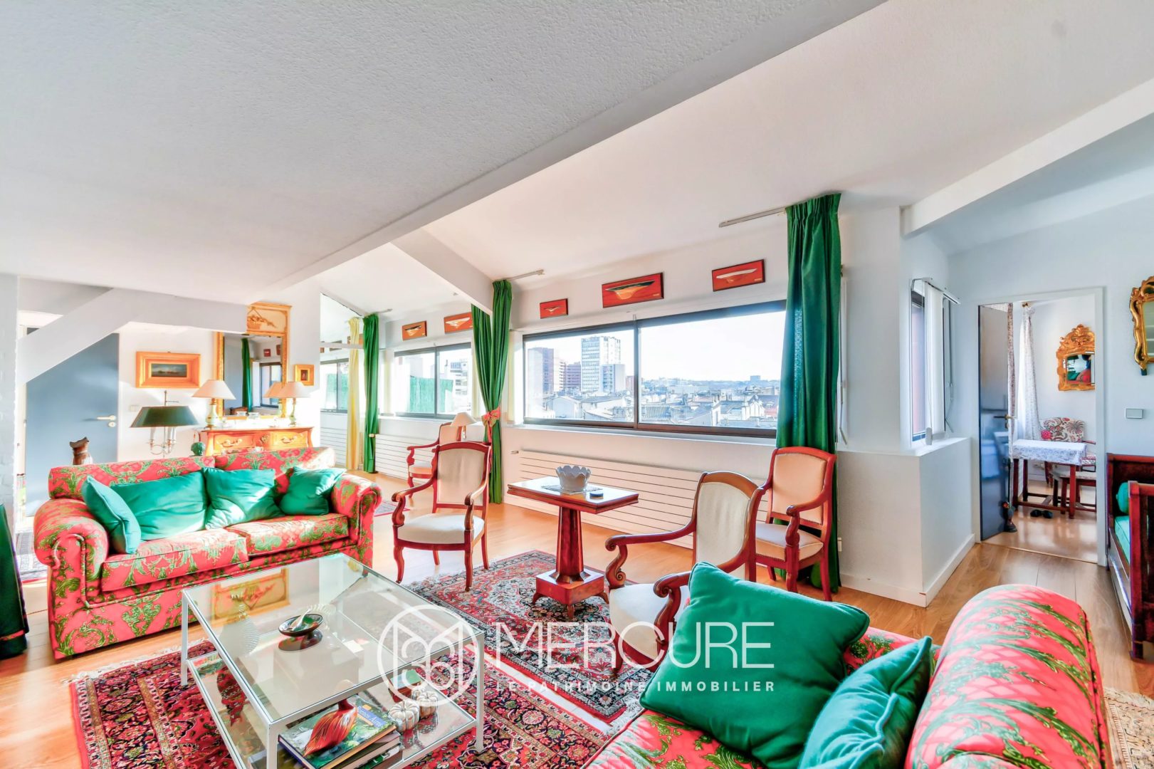 – un salon, avec très belle vue sur les toits de Toulouse, bureau coin tv en mezzanine,