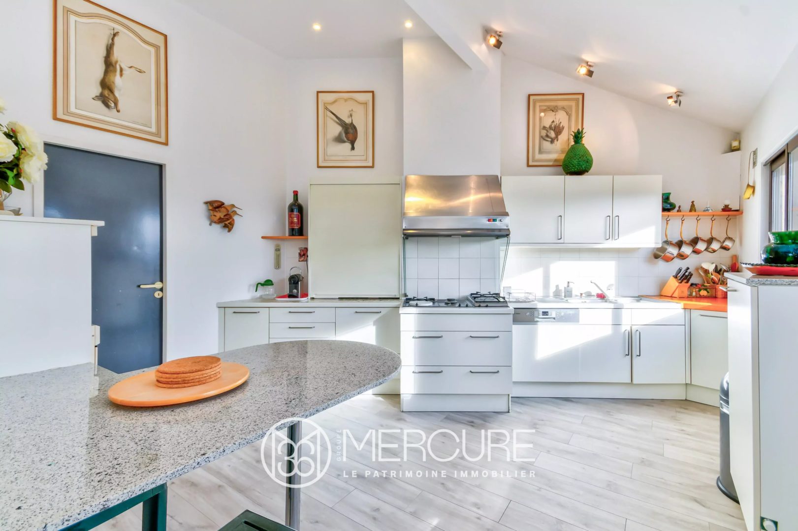 – une cuisine équipée, une arrière cuisine avec buanderie,