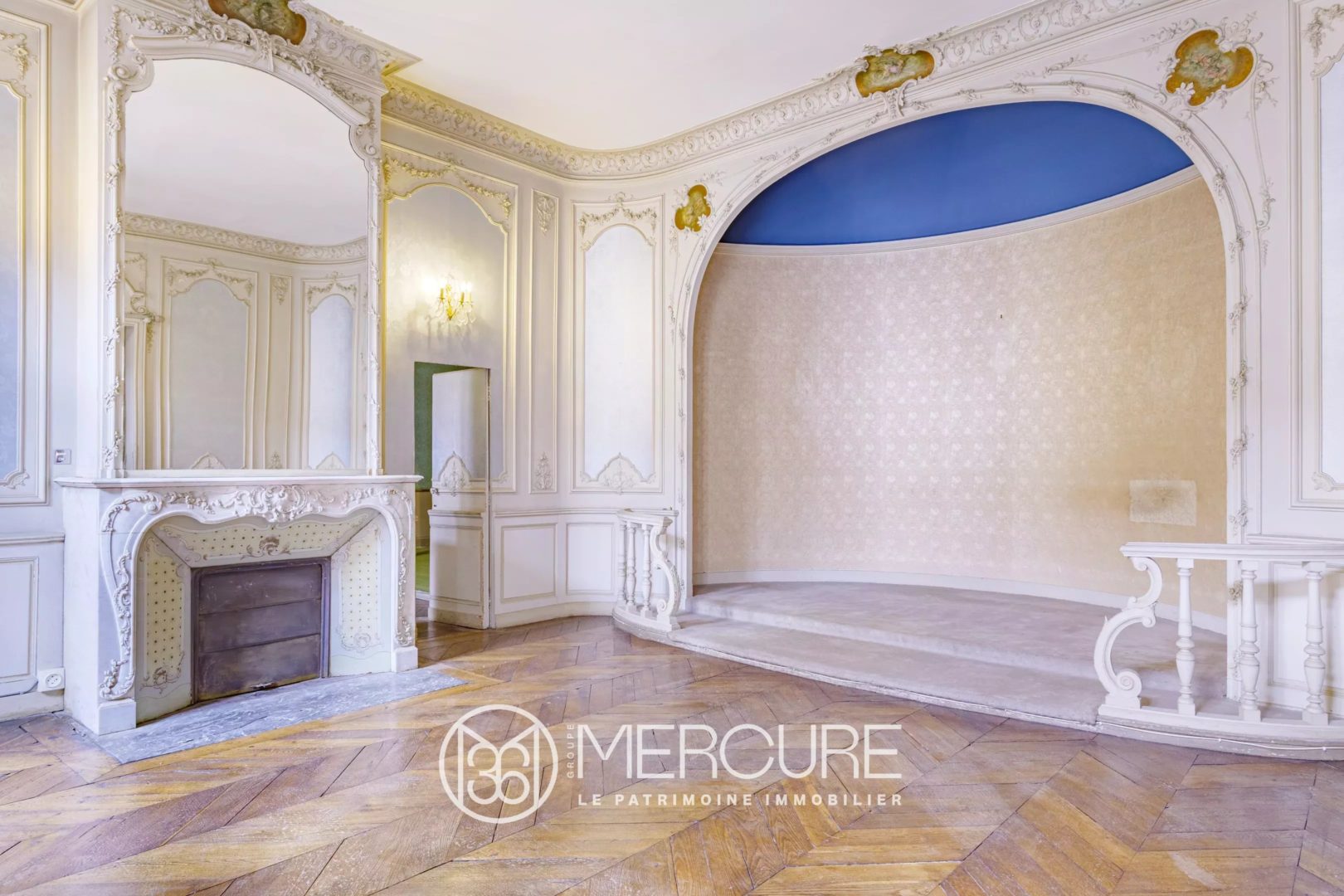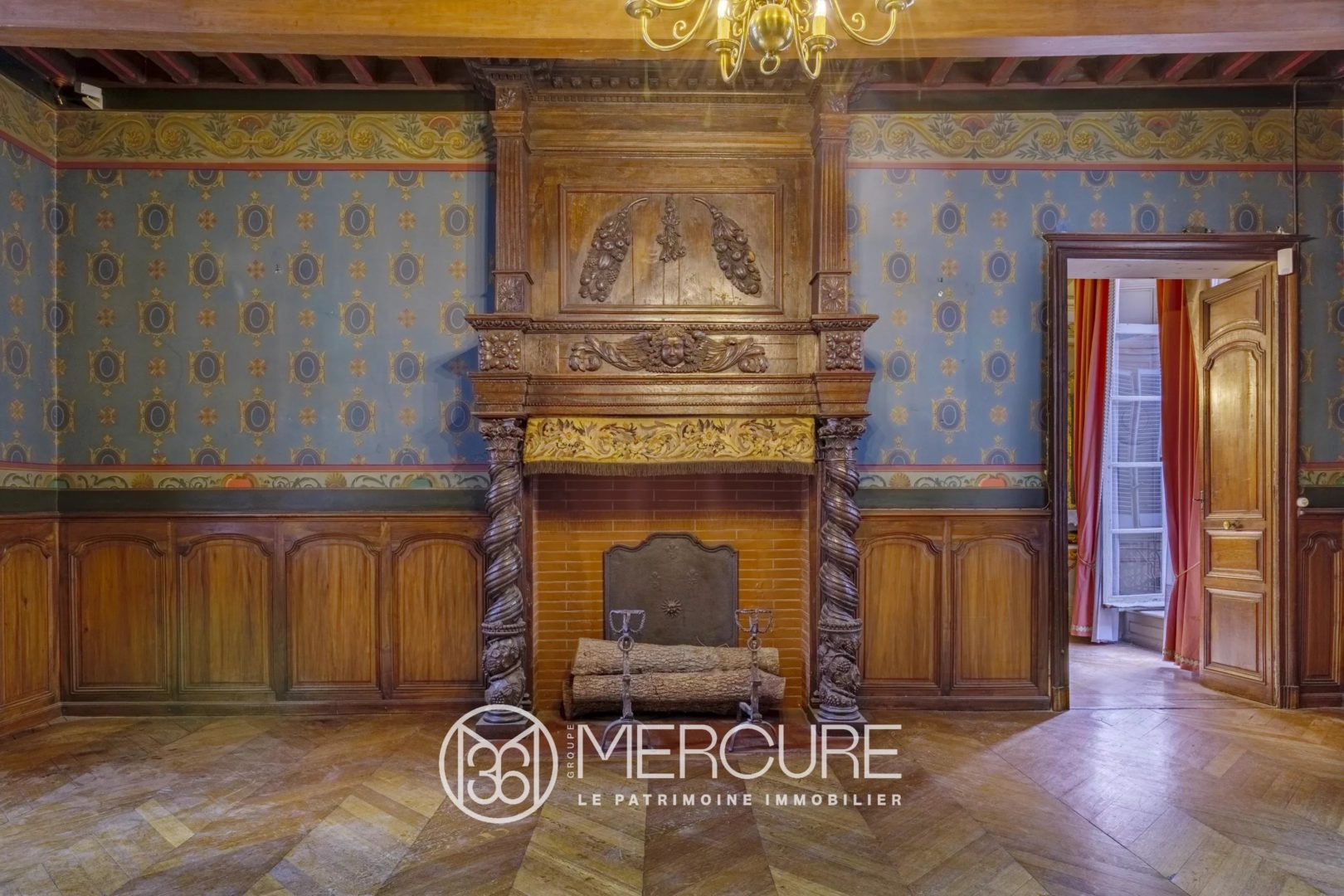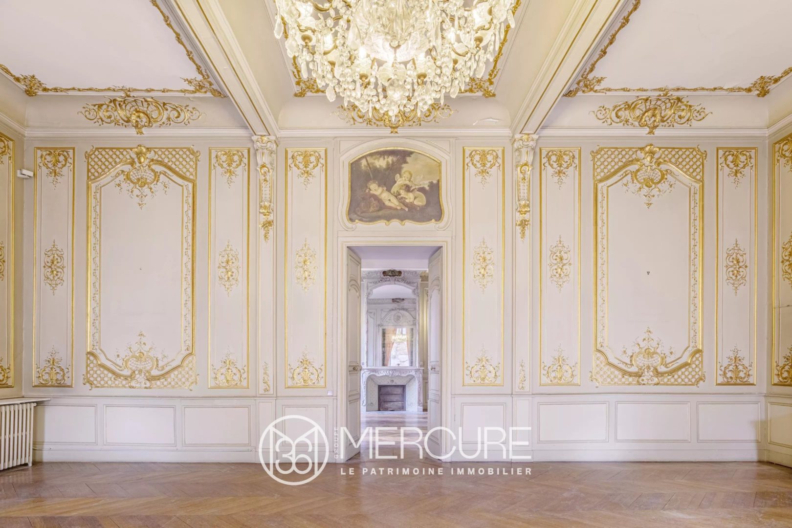 À l’étage, l’ancien salon de billard, orné d’une cheminée monumentale, dessert trois appartements de réception. Le plus vaste et le plus raffiné occupe une position dominante. Baigné de lumière grâce à ses grandes fenêtres sur cour, il révèle, dans un état authentique, l’élégance absolue de la fin du XVIIIᵉ et du XIXᵉ siècle :