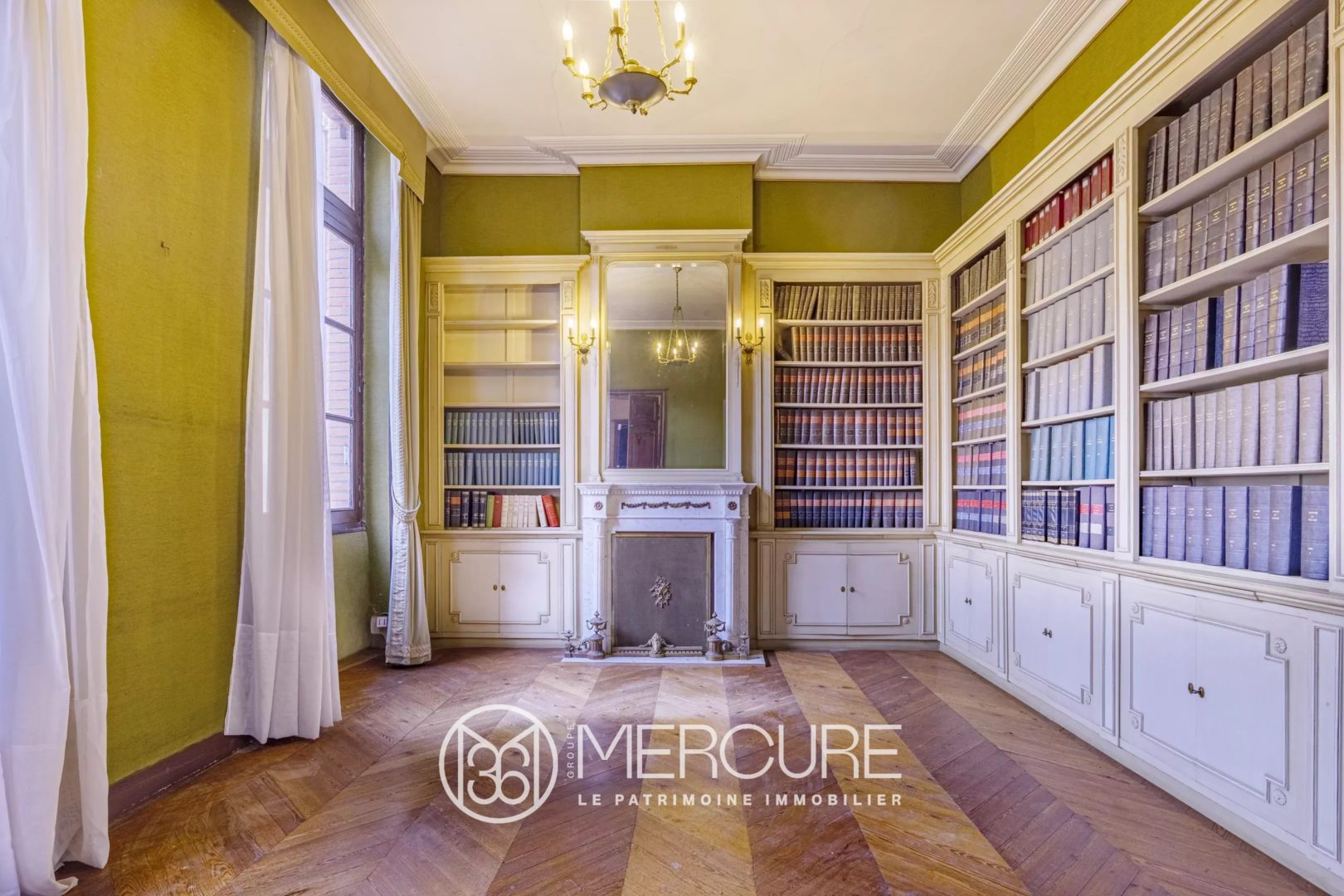 Premier étage : surface principale en L de 390 m² comprenant l’ancien salon de billard orné d’une cheminée monumentale et trois salons de réception, dont un séjour de 65 m² aux volumes exceptionnels, évoquant une véritable salle de bal. Baigné de lumière grâce aux grandes fenêtres donnant sur la cour, cet étage révèle l’élégance authentique des XVIIIᵉ et XIXᵉ siècles, avec boiseries, parquets en point de Hongrie, hauteurs sous plafond, moulures et cheminées monumentales.
