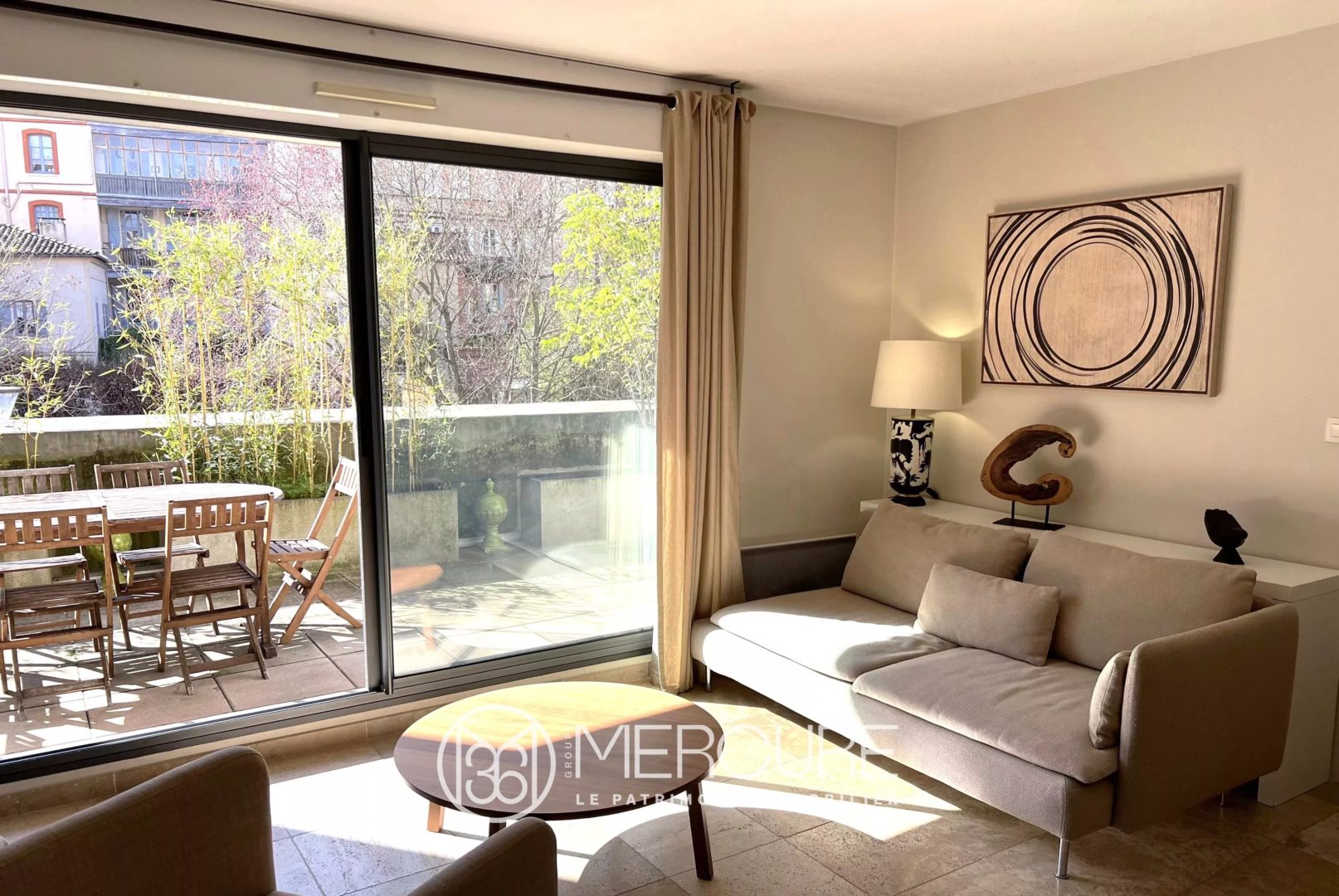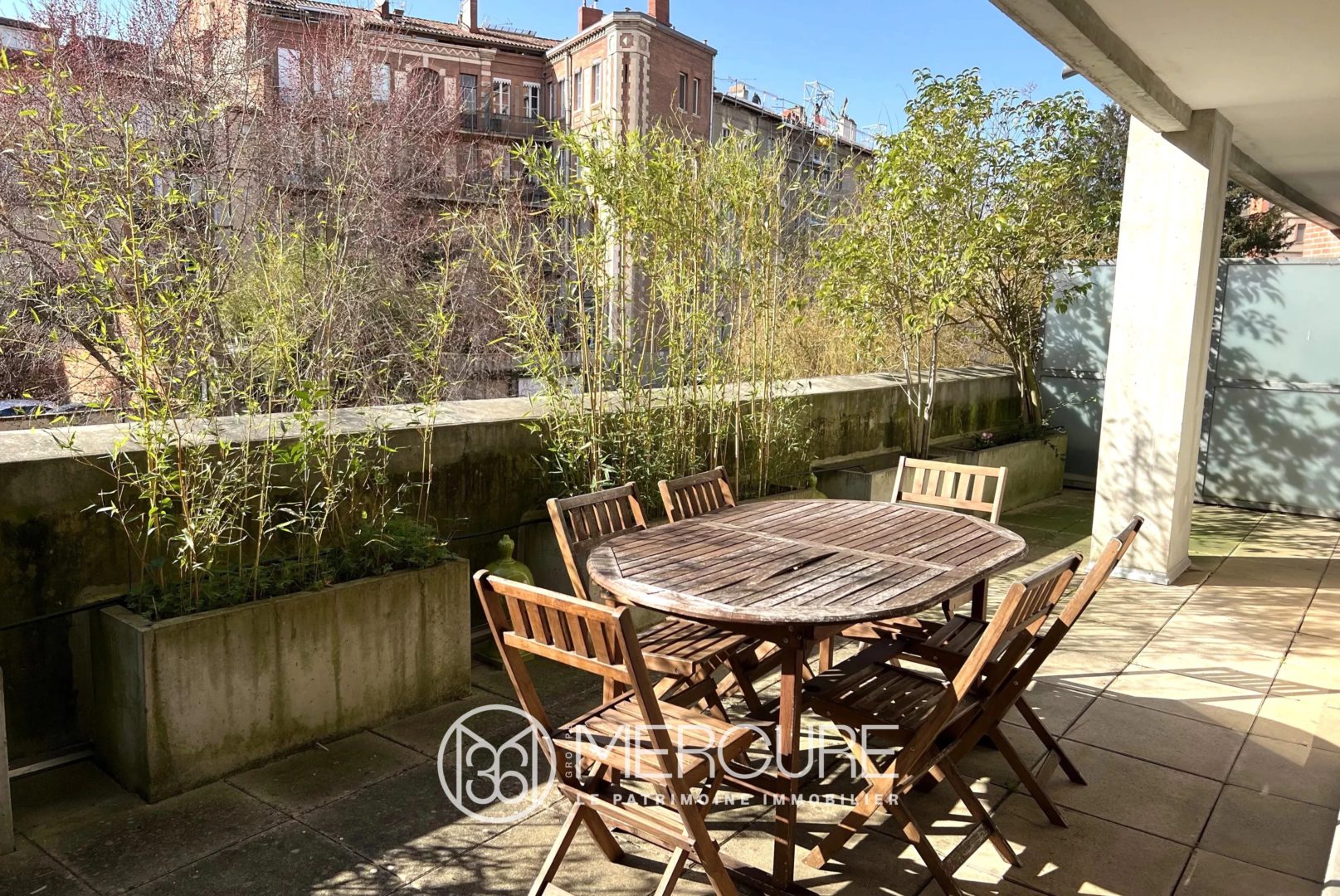 L’ensemble est équipé de baies vitrées ouvrant sur une terrasse de 32 m², exposition Ouest, et surplombant l’avenue de la Garonnette.