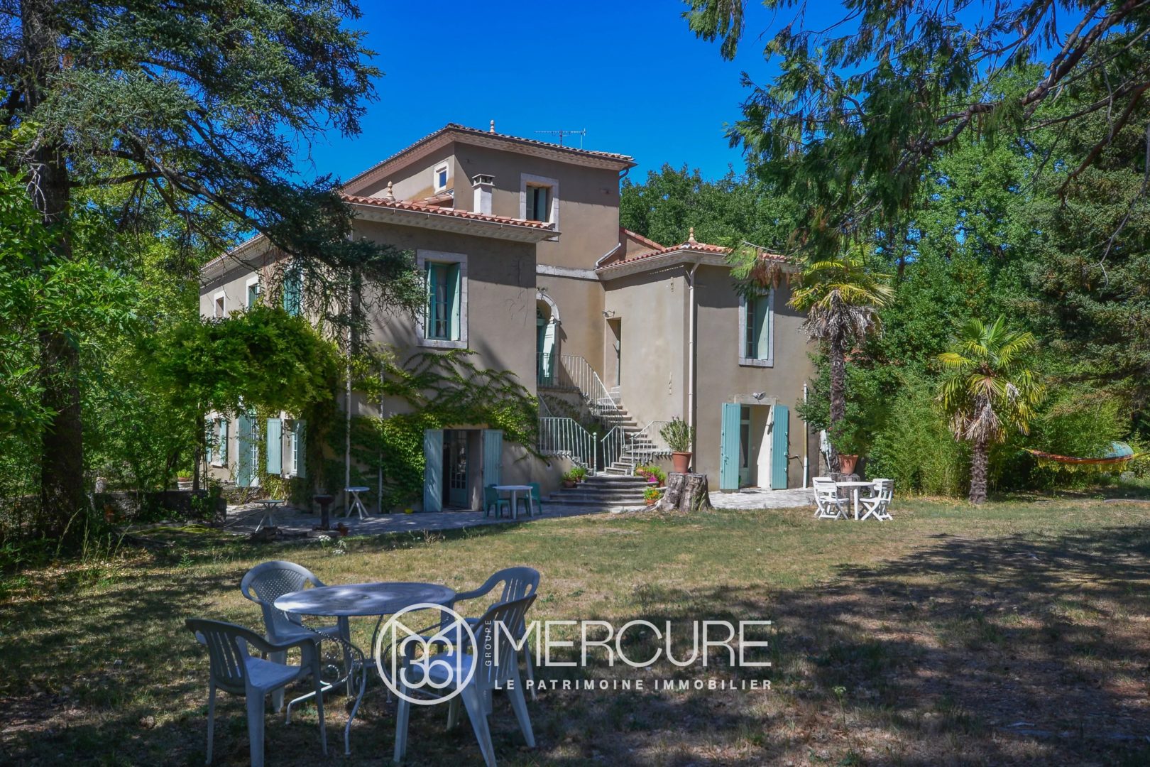 Au-delà du parc aux arbres centenaires clos de murs de pierre, la propriété s’étend sur près de 48 hectares d’une nature exceptionnelle : garrigue, prairies, chênes blancs.