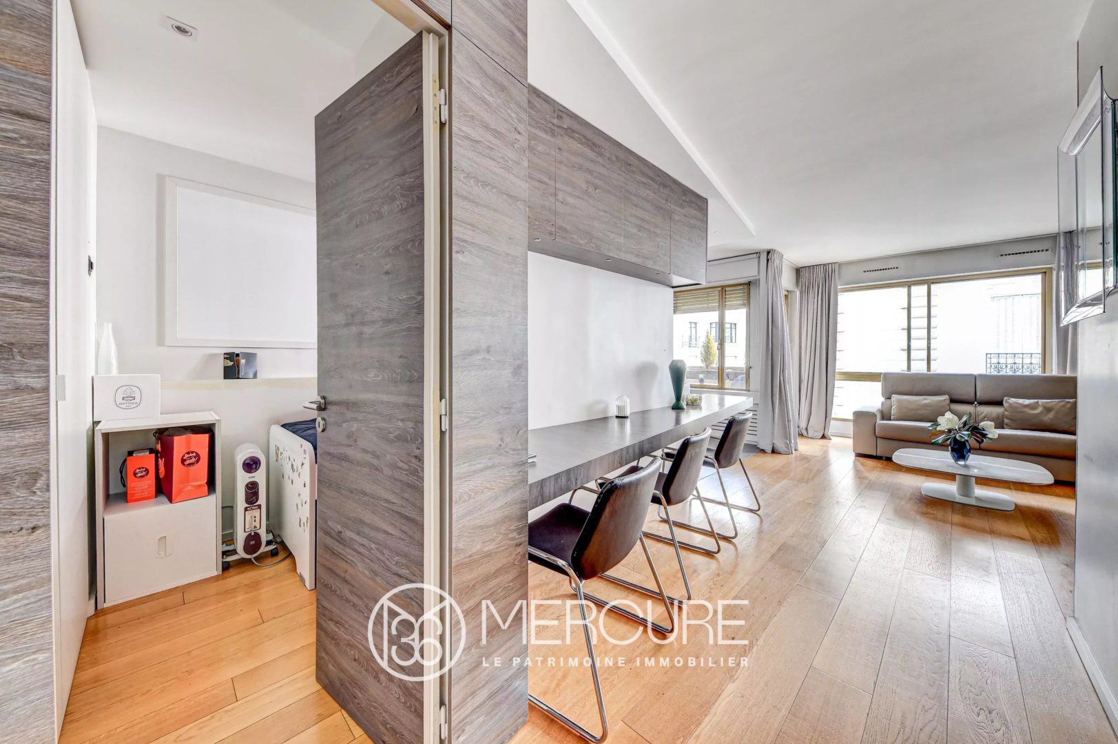 Paris 7e Gros Caillou – Pont de l’Alma, appartement de 56 m² parfaitement rénové, habitable clefs en main, avec petite terrasse en loggia. Situé au 3ème étage d’un immeuble récent avec gardienne, il comprend une entrée, un espace de séjour avec accès à la terrasse et cuisine ouverte entièrement équipée, une chambre avec salle de bains, des toilettes séparées et un petit bureau pouvant faire chambre d’appoint.