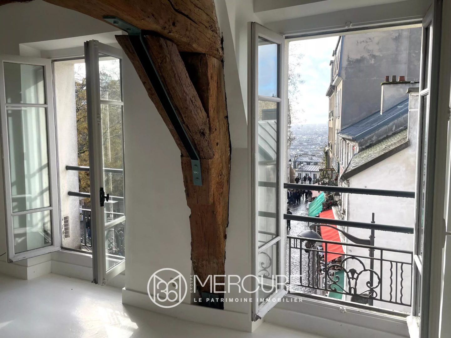 A VENDRE PARIS 18ème MONTMARTRE, DONNANT SUR LA MYTHIQUE PLACE DU TERTRE, cet incroyable appartement destiné aux amoureux de Montmartre et aux amateurs de quartiers animés ! Au 2ème étage par escalier, il surplombe la place des artistes avec une exposition plein sud et une échappée de vue magnifique sur Paris.