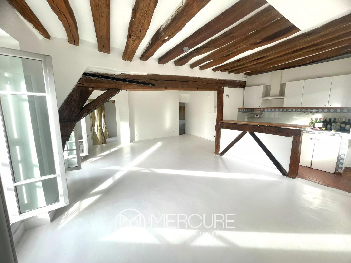 Grande pièce de séjour de 40 m² style loft baignée de lumière, chambre principale avec salle de bains, 2ème chambre d’où l’on aperçoit les cîmes du Sacré-Coeur, espace bureau, cuisine à aménager ouvrant sur une petite terrasse idéale pour petit-déjeuner, et en souplex au 1er étage, 3ème chambre avec sa salle d’eau (pouvant être rendue indépendante). Cave en annexe.