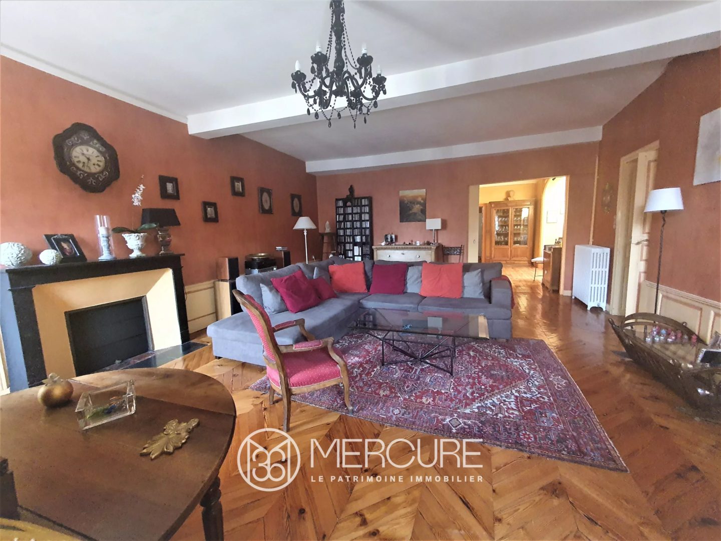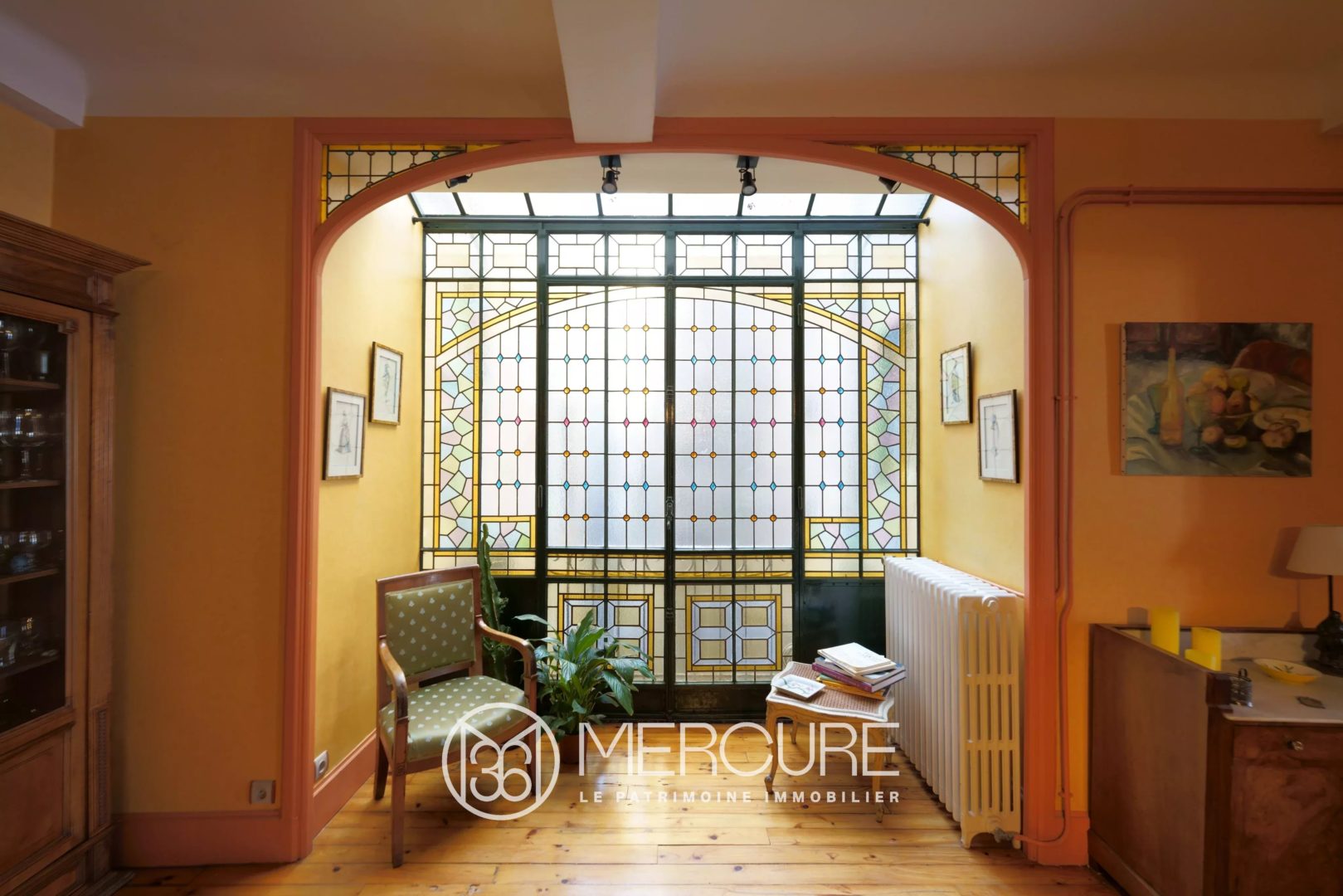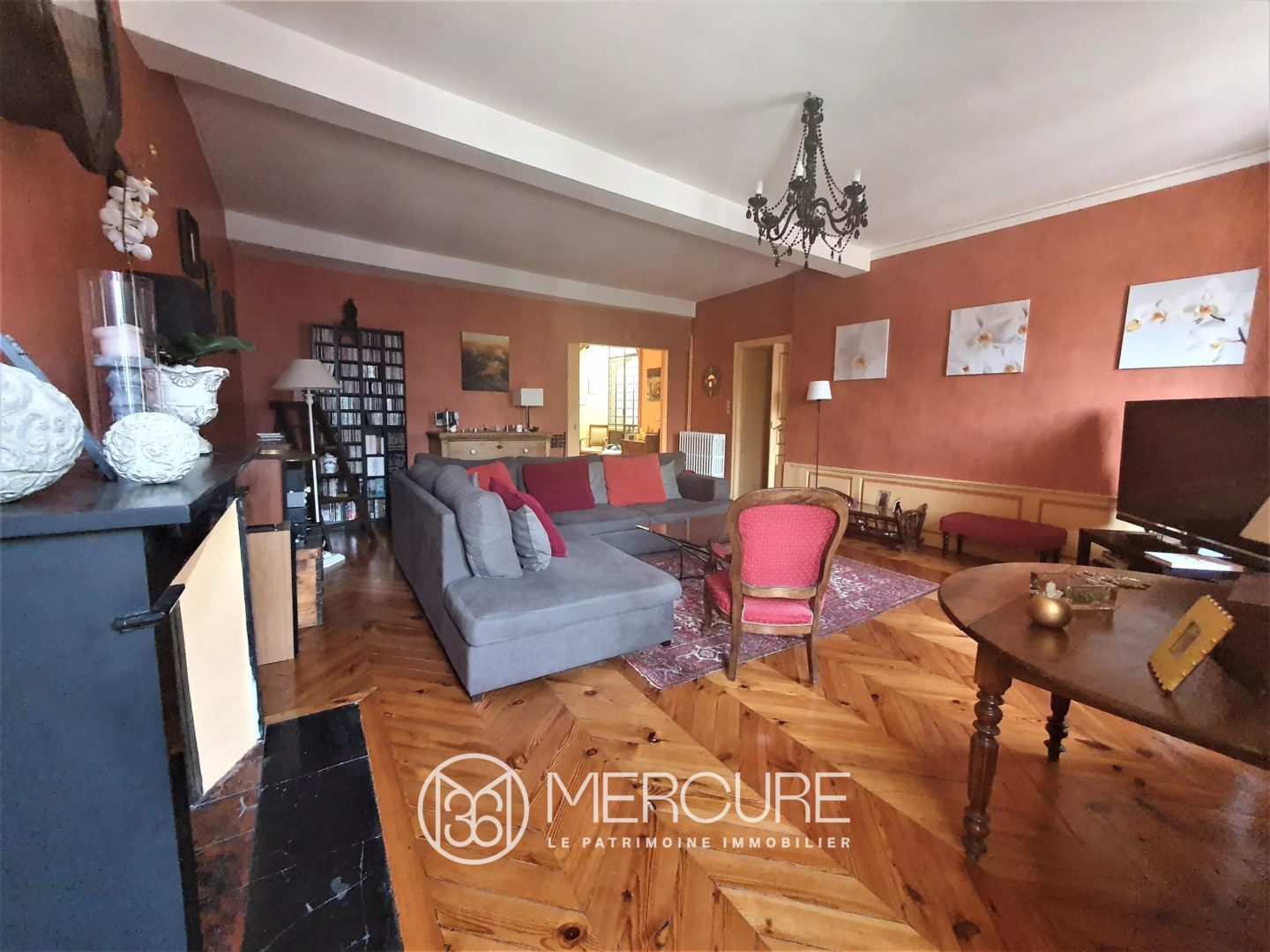 Traversant et occupant la totalité de l’étage, ce T6 est composé d’une entrée, d’un spacieux séjour donnant sur un balcon, d’une salle à manger avec une magnifique verrière, d’un coin bibliothèque, d’une cuisine dînatoire équipée exposée plein sud, de quatre chambres et d’un bureau.
