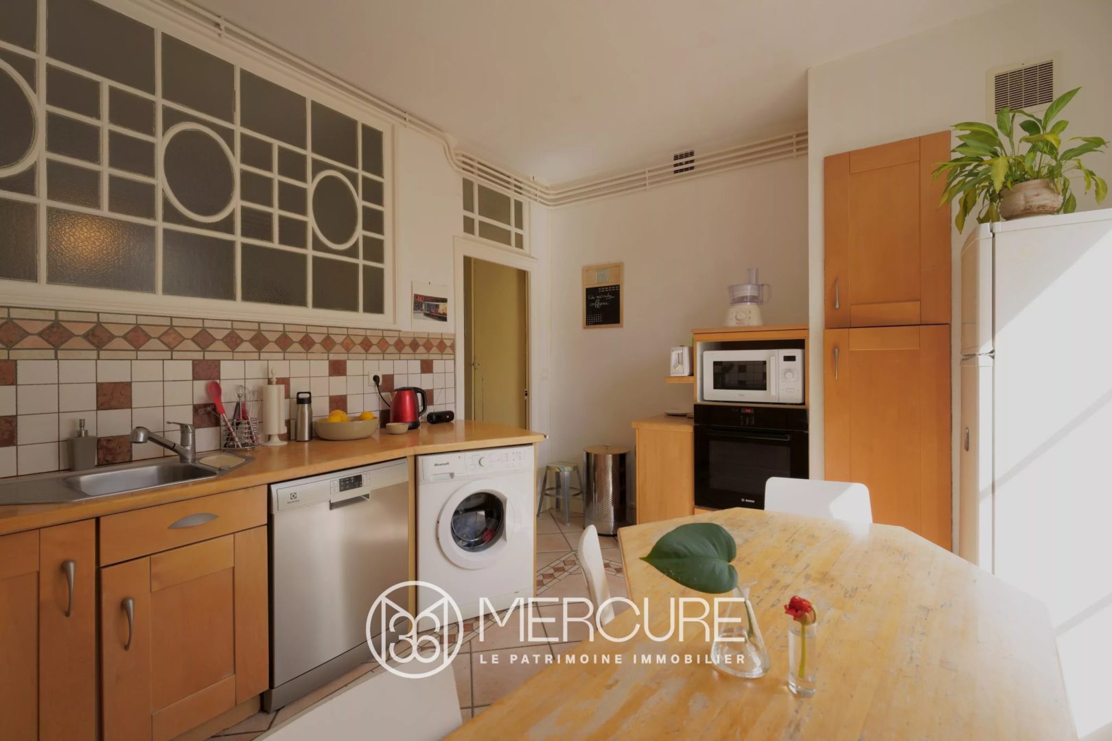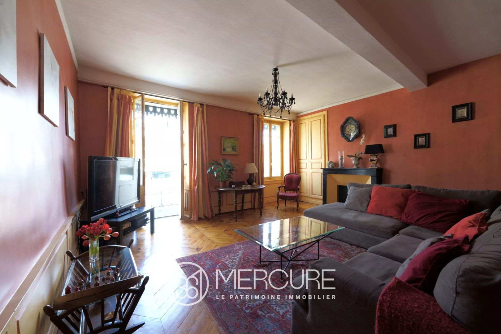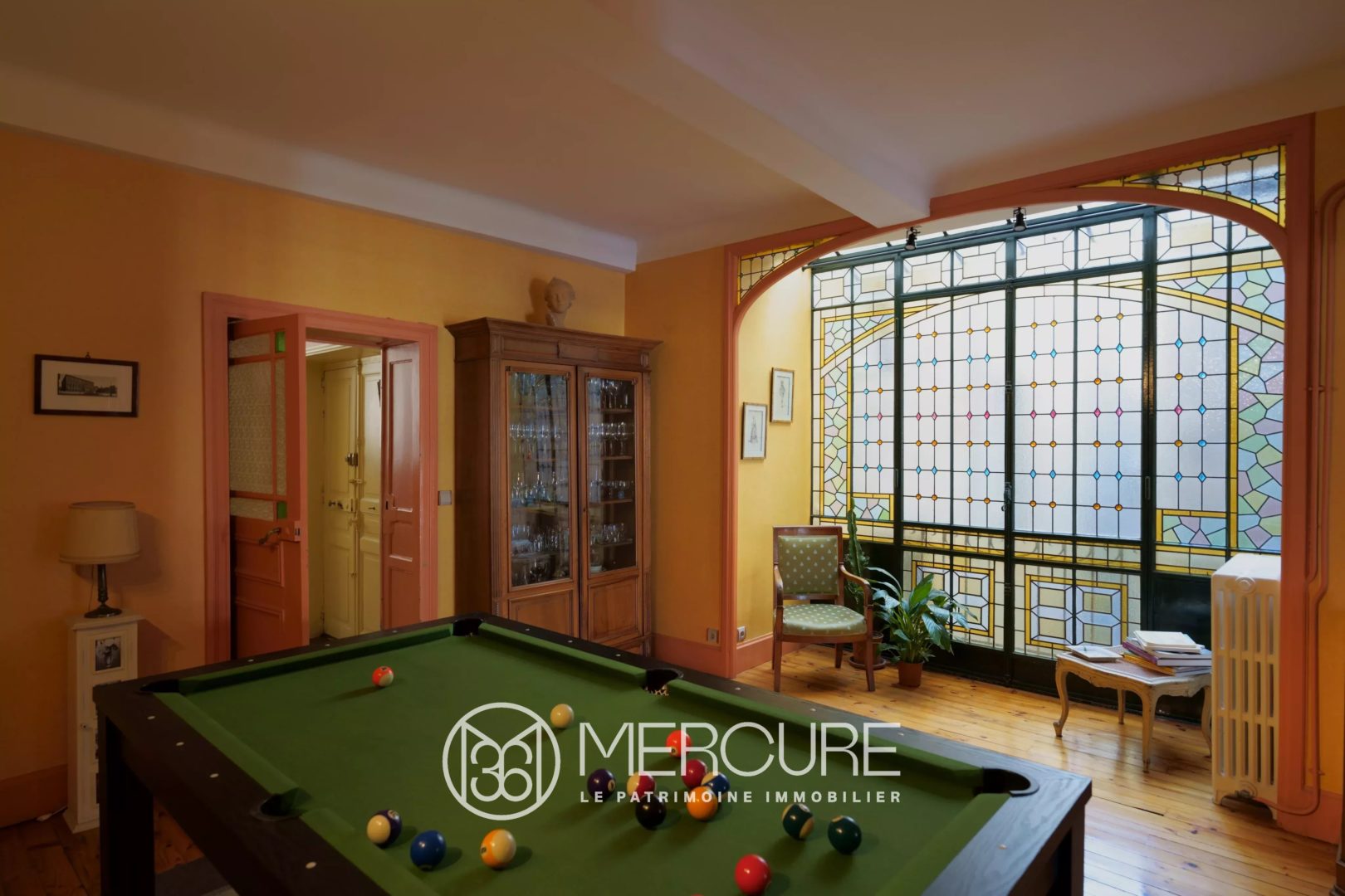 Traversant et occupant la totalité de l’étage, ce T6 est composé d’une entrée, d’un spacieux séjour donnant sur un balcon, d’une salle à manger avec une magnifique verrière, d’un coin bibliothèque, d’une cuisine dînatoire équipée exposée plein sud, de quatre chambres et d’un bureau.