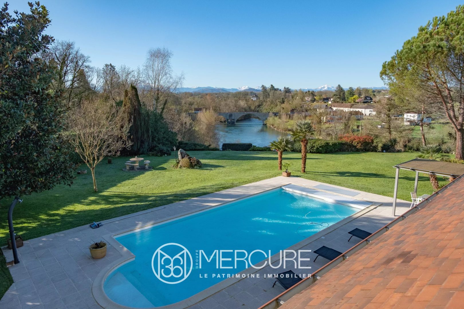 Face à la chaîne des Pyrénées sise sur une emprise de 3 400 m2, rare propriété au panorama d’exception. Vue exceptionnelle sur le gave d’Oloron et les remparts de la cité fortifiée de Navarrenx. Vous bénéficiez d’un accès privé au cours d’eau.