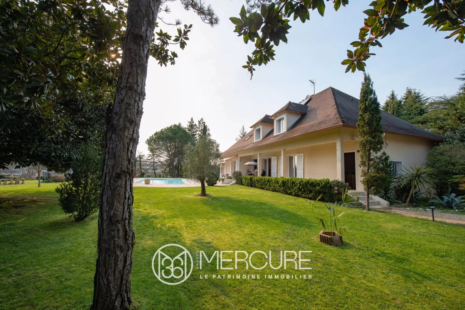 Chauffage mixte : électricité/solaire/bois. Parc paysagé et arboré.