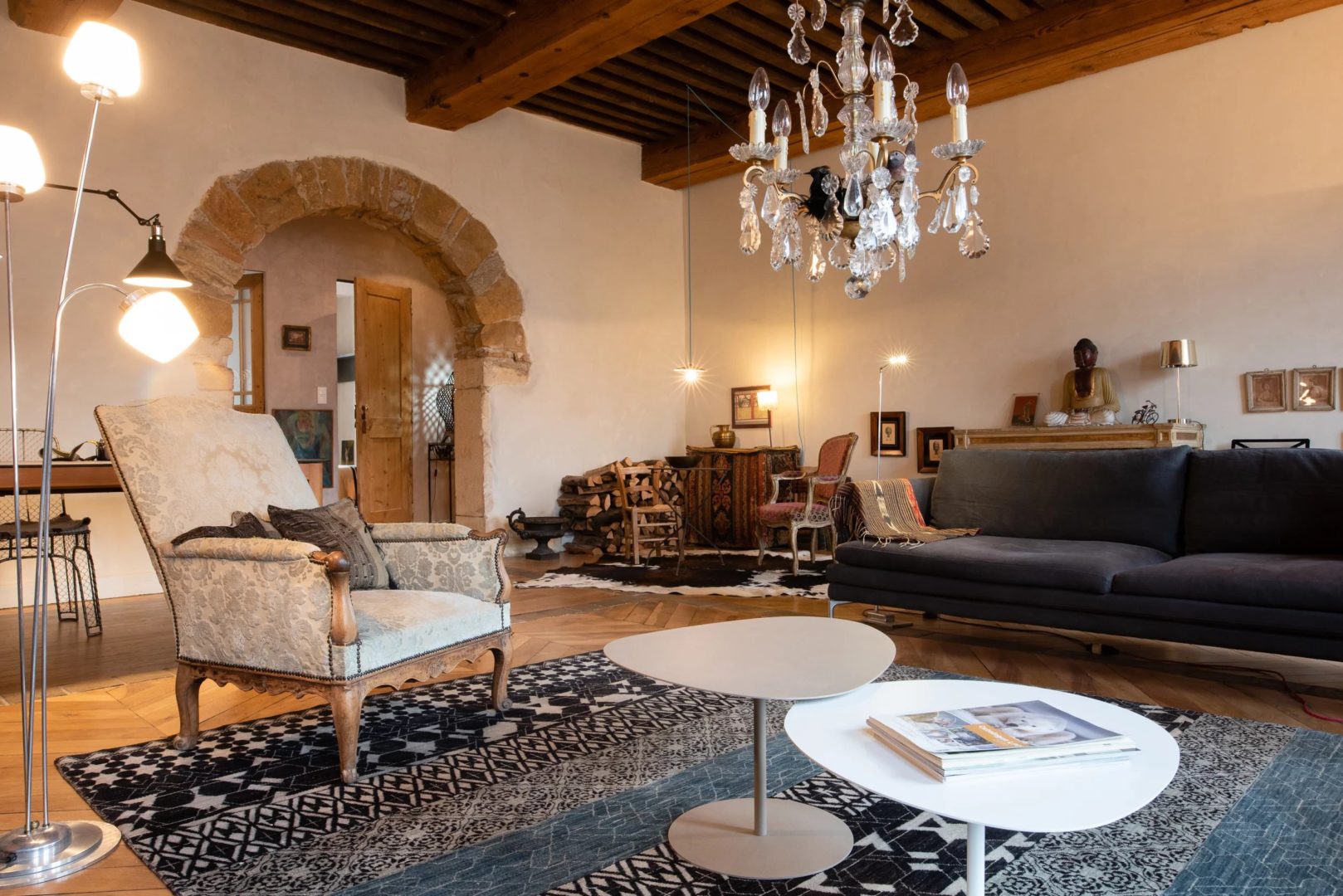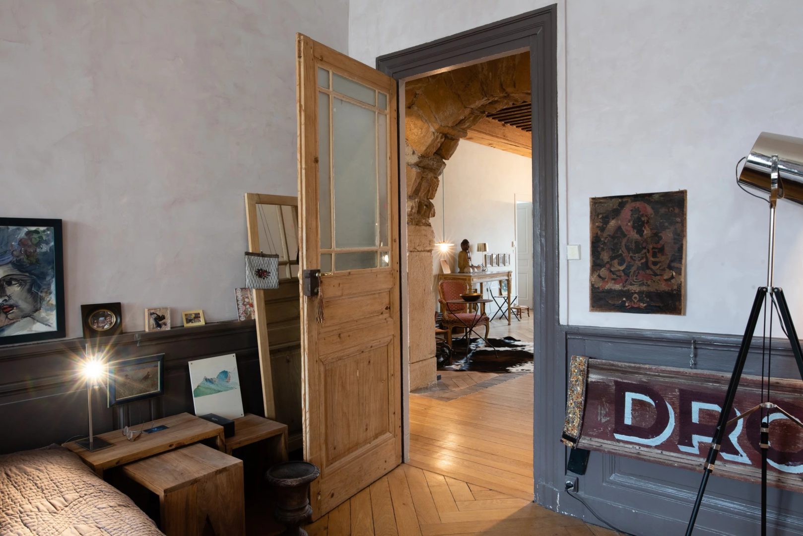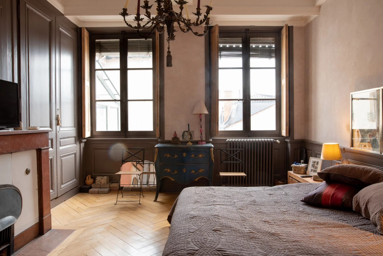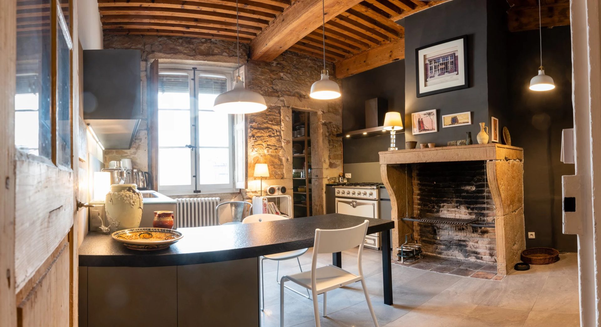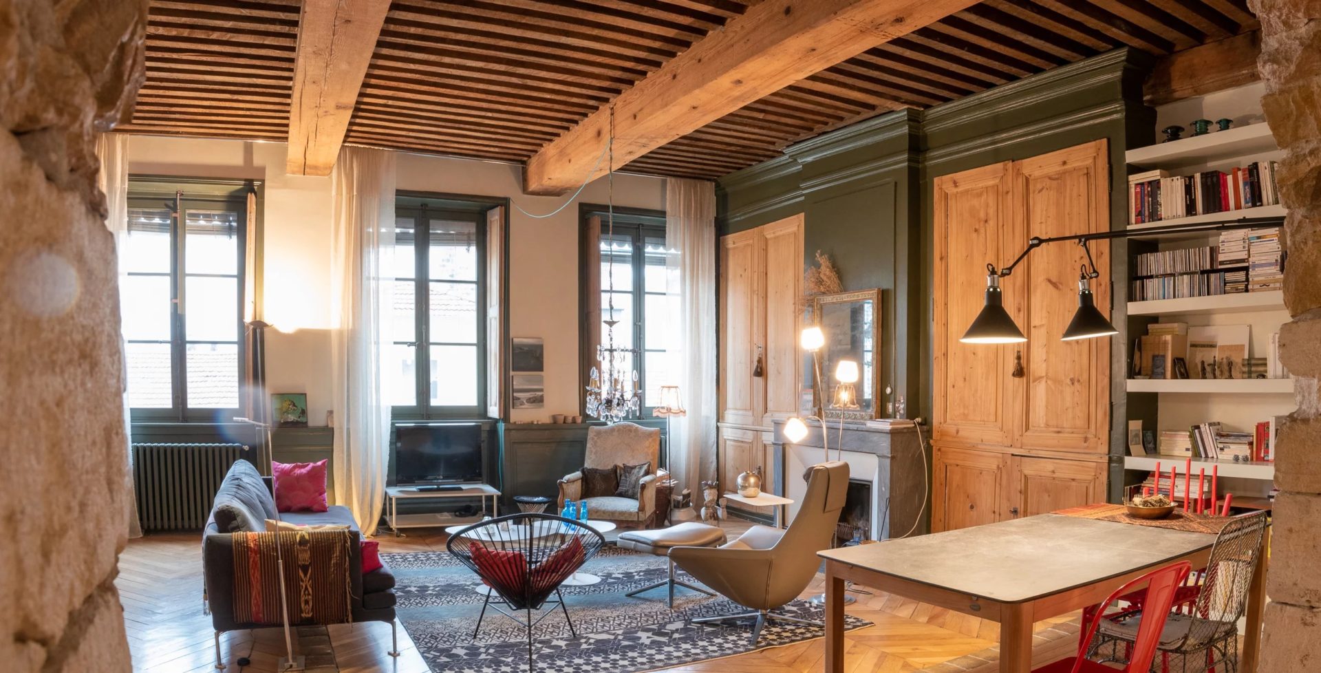 Magnifique appartement de 4 pièces au cachet exceptionnel dans un quartier calme et très agréable : ce bien d’exception au dernier étage d’un bel immeuble dispose de tous les éléments de décoration lui procurant charme et atmosphère délassante : parquets à chevrons, 4 cheminées, plafonds à la française, murs en pierre, arche en pierre dans le salon, tomettes, jalousies, volets intérieurs en bois.