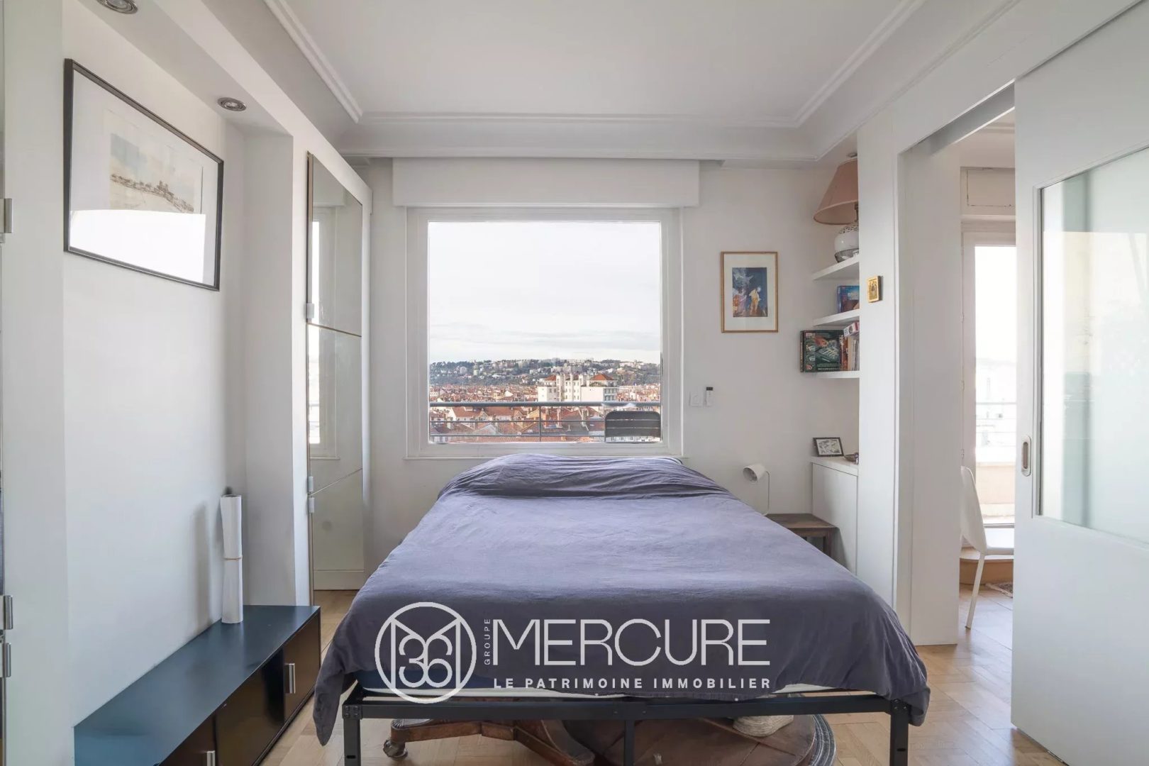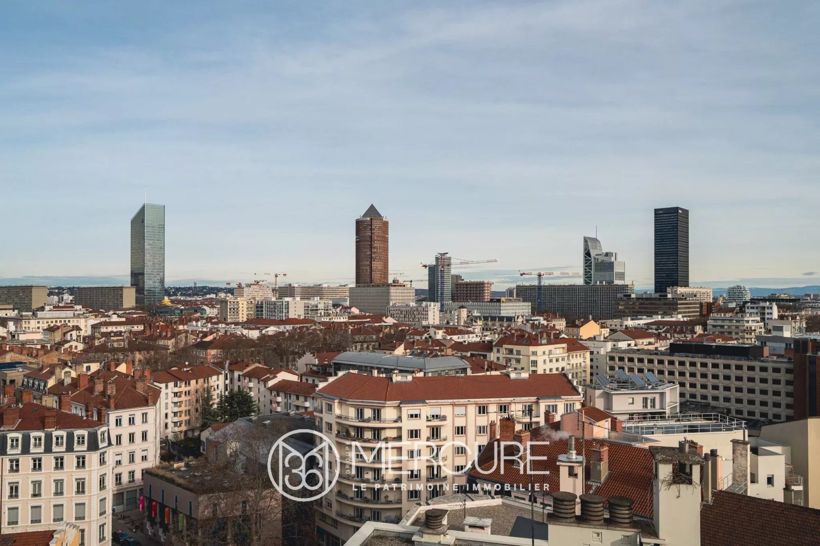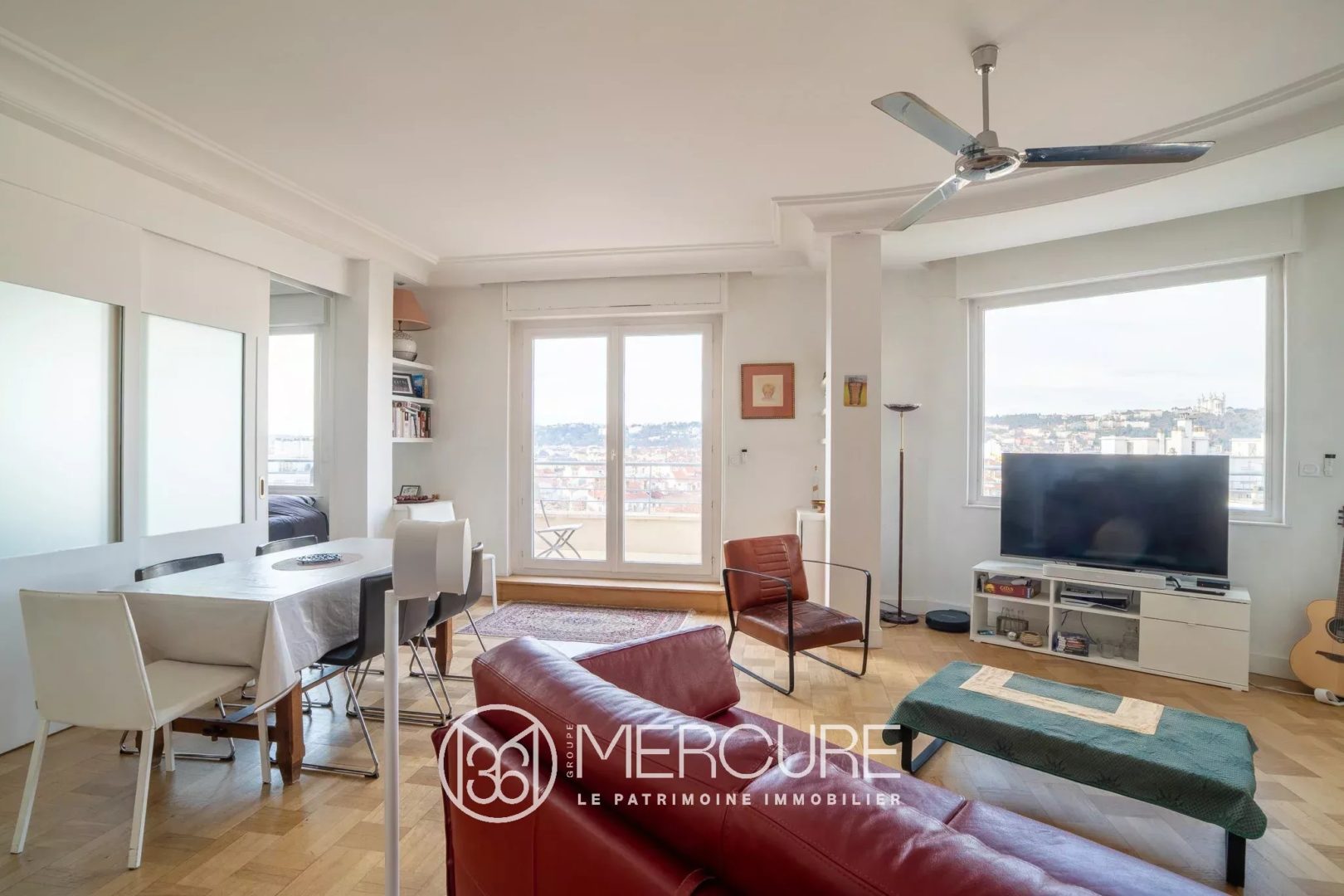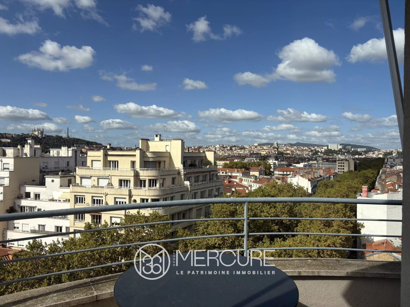 En dernier étage, très agréable appartement de 75,25 m² en bon état offrant une vue magnifique sur Lyon, les Monts du Lyonnais et le Bugey.