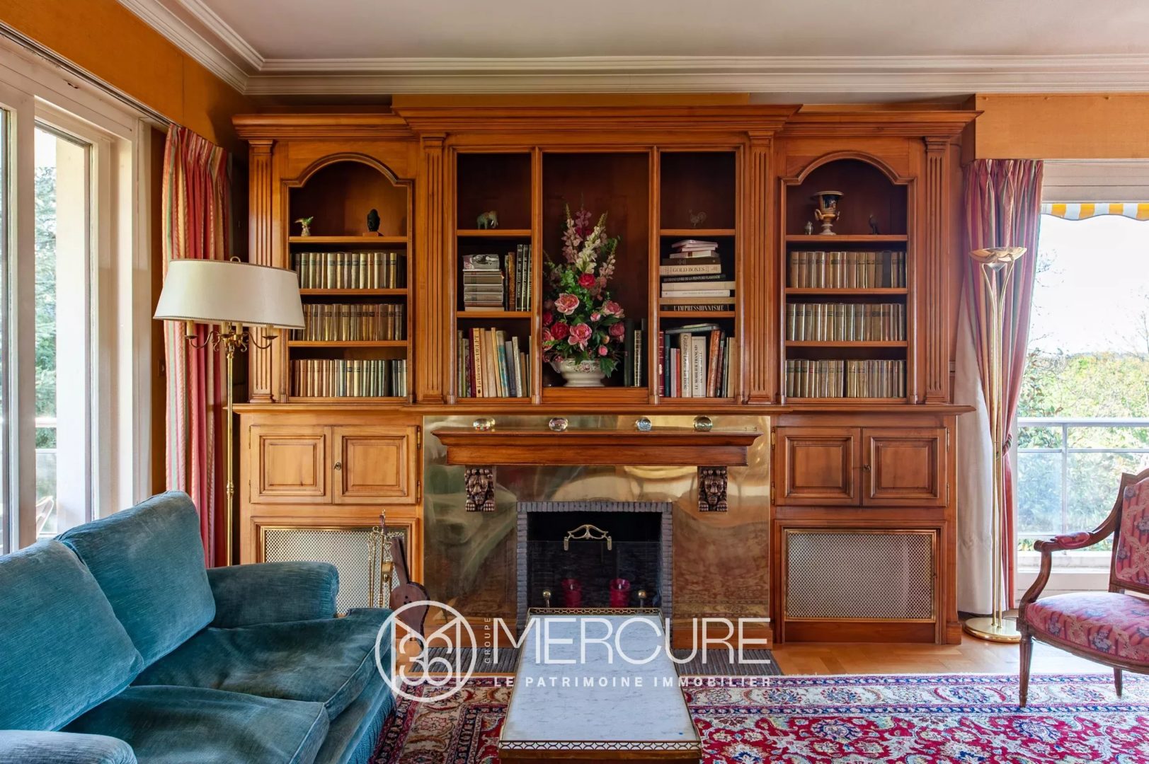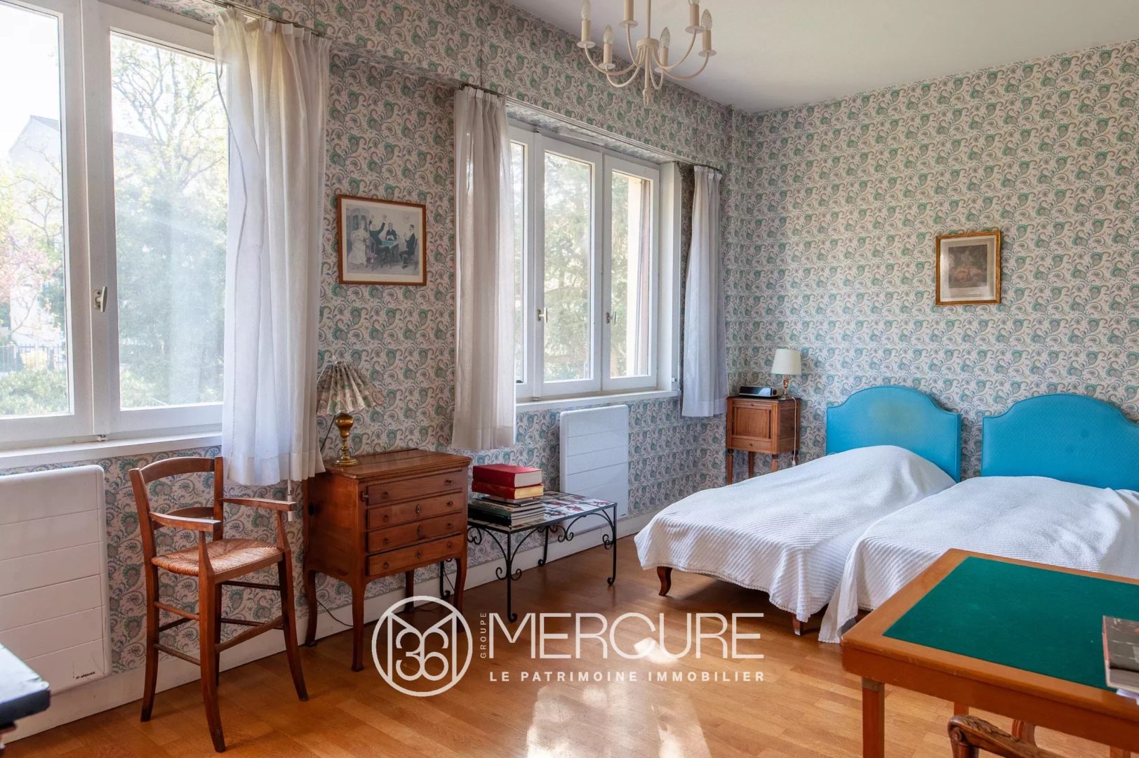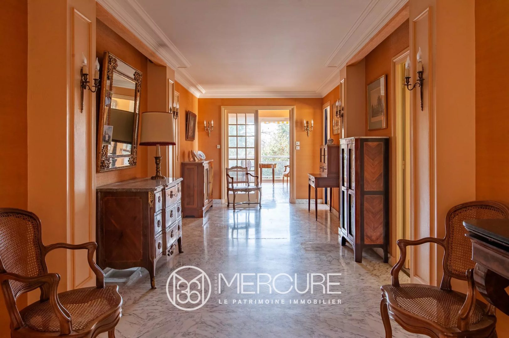 Beaux volumes, boiseries et cheminée dans le salon, parquet massif et marbre au sol en font un bien de caractère.