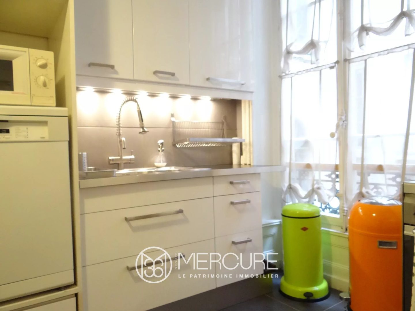 ). Un espace salle-à manger jouxte la cuisine équipée indépendante, deux chambres sur cour, au calme, une salle de bain, une salle d’eau / buanderie, un wc.