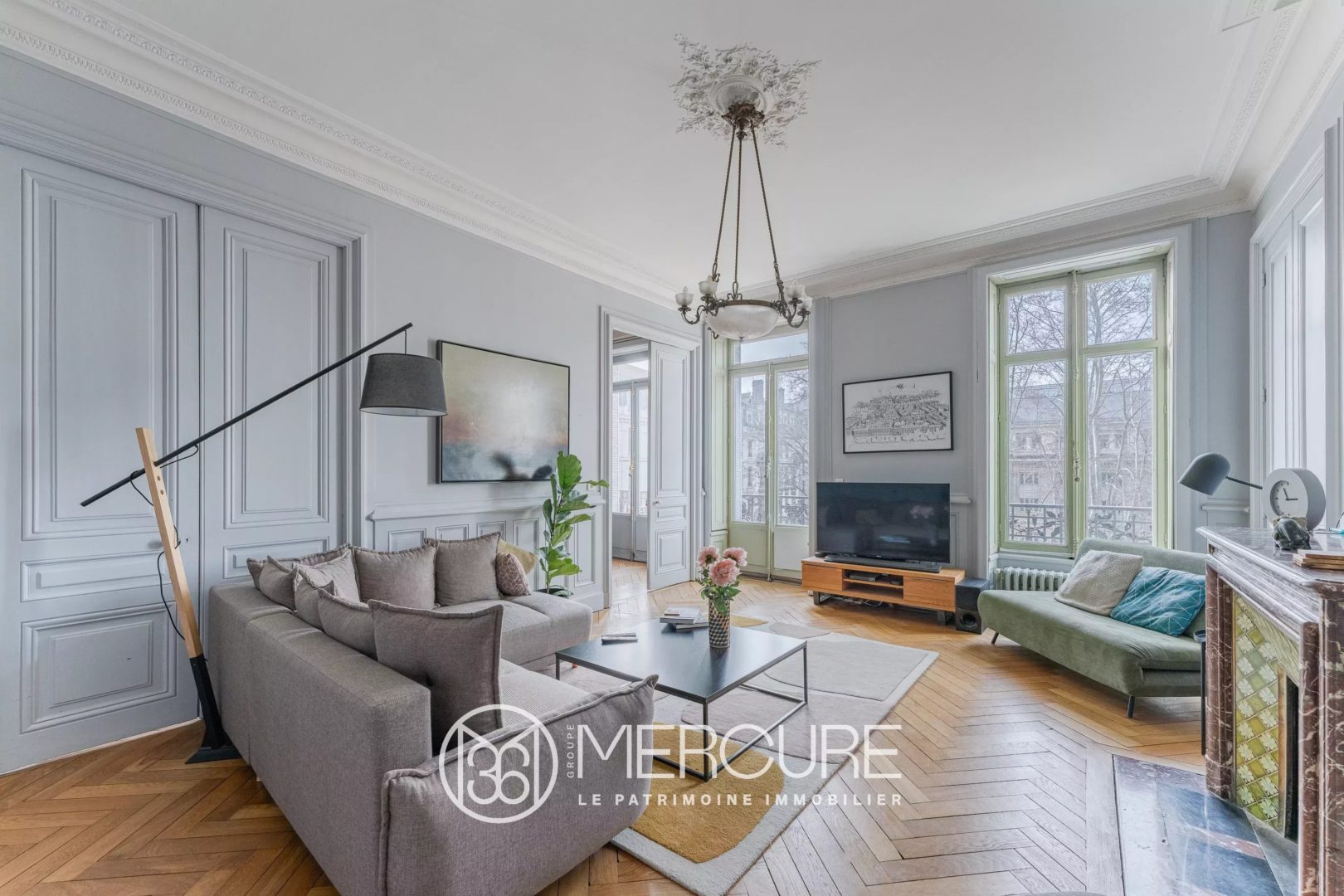 D’une superficie généreuse de 200 m², il séduit par ses volumes, sa luminosité et ses éléments d’époque soigneusement conservés. Il se compose d’un vaste séjour, d’un salon élégant, d’une grande cuisine indépendante, de quatre chambres, de deux salles de douche et de deux toilettes.