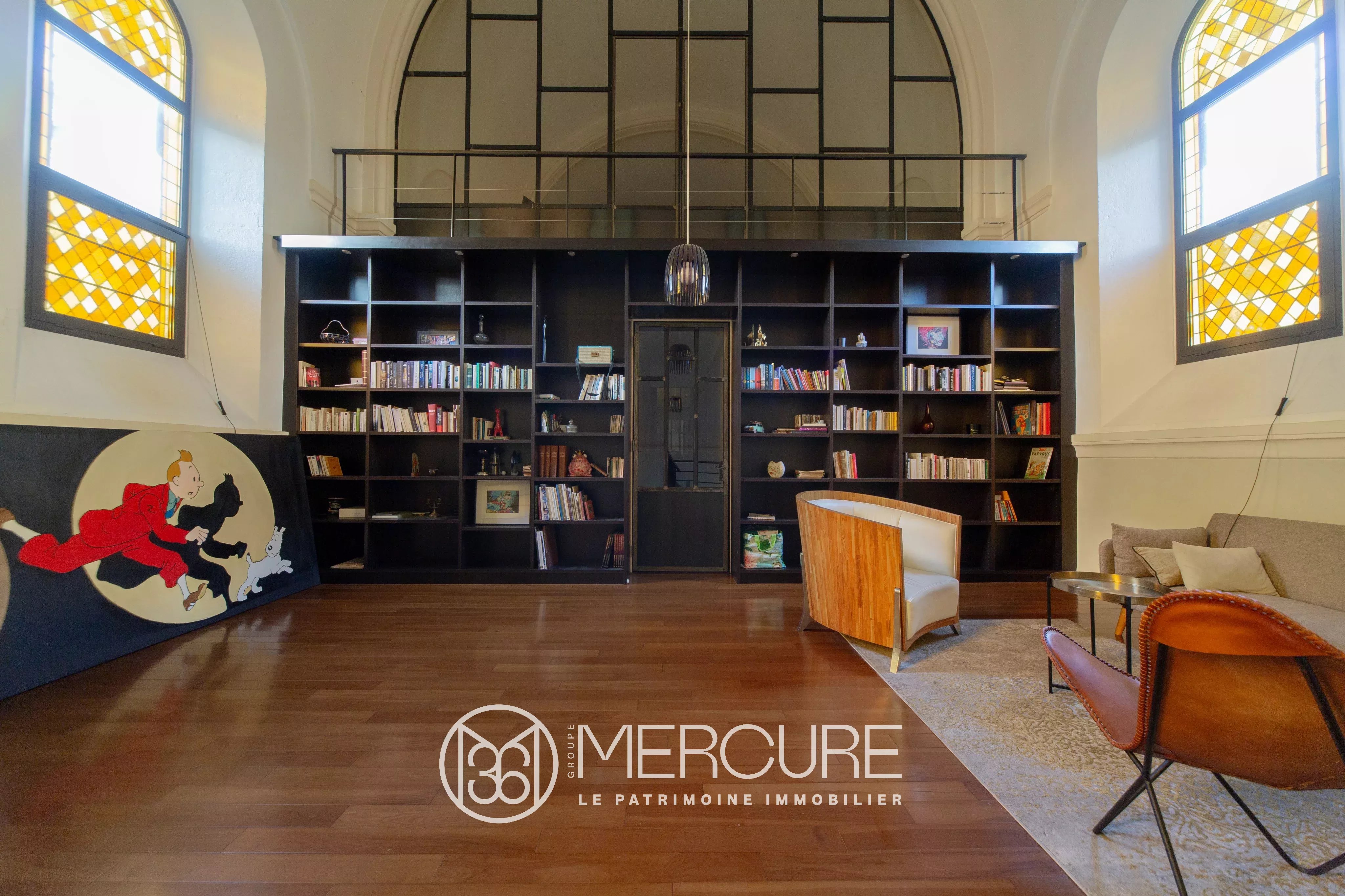 Dès l’entrée, la nef centrale de plus de 100 m² impressionne par sa clarté et son atmosphère singulière. Une cuisine contemporaine et équipée s’ouvre sur un vaste salon aux lignes épurées, accompagné d’un bureau, d’une buanderie, d’un dressing et d’un toilette invités. Un superbe escalier métallique, conçu sur mesure, mène à une bibliothèque suspendue puis au premier espace nuit : deux chambres, une salle de bain, un dressing et un second toilette composent ce niveau.
