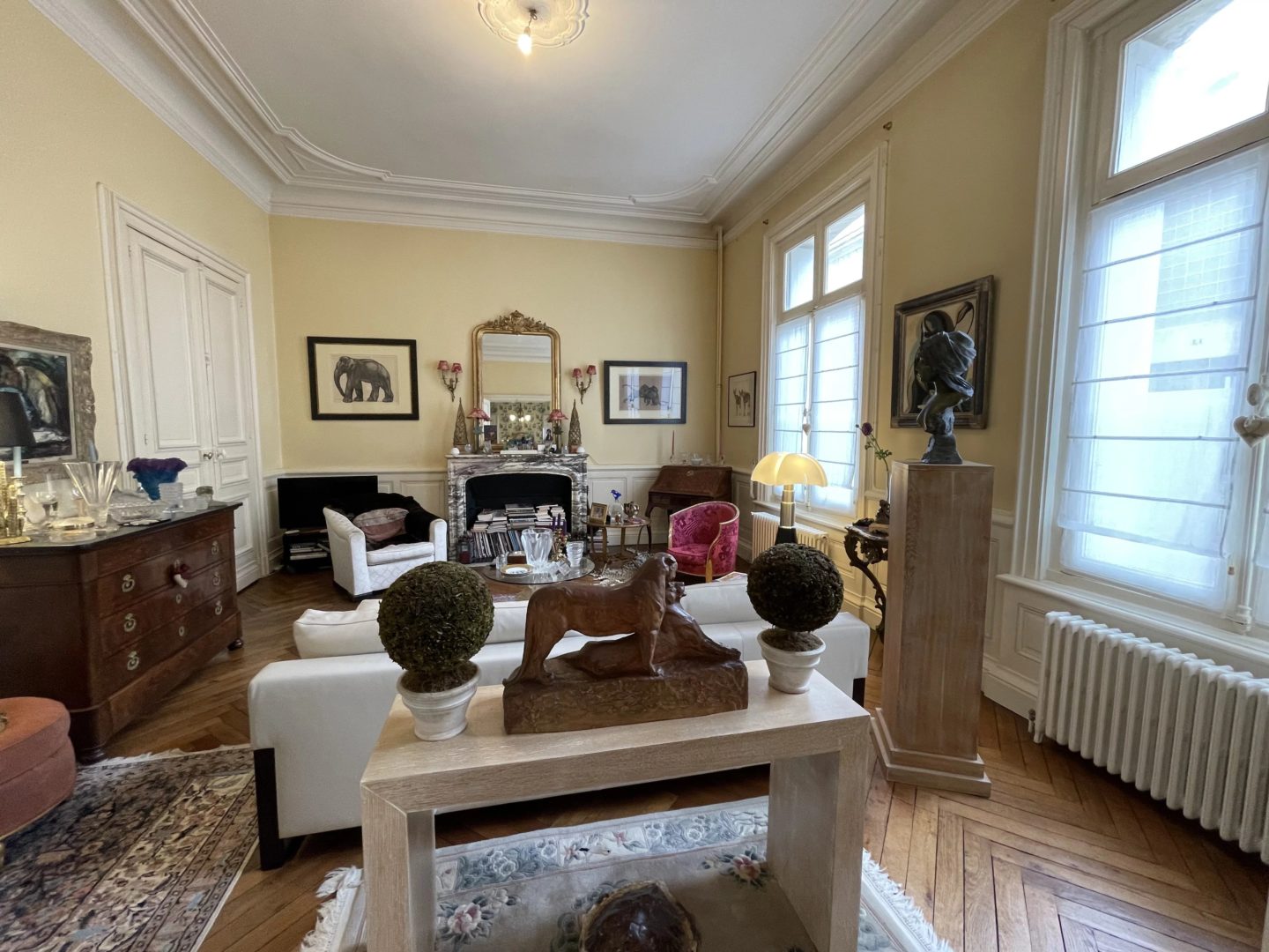 Dans petite copropriété, appartement de caractère de type 4 de 116 m² avec beaux éléments (parquet, moulures, cheminées)