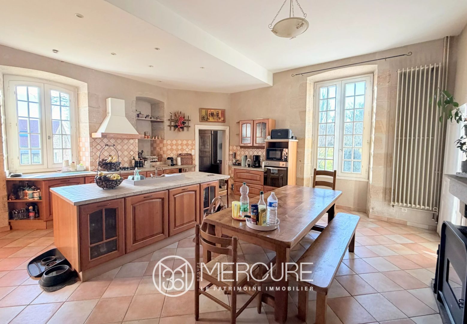 • Une cuisine de style provençal de 33 m² avec arrière-cuisine et poêle à granulés