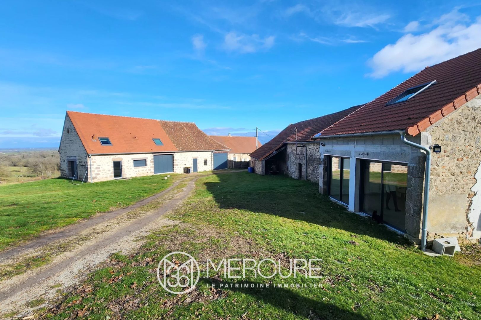 • Grande grange de 192 m² (26 m de long) : partiellement rénovée avec espaces bureaux et salles de réunion (travaux récents), offrant encore un beau potentiel d’aménagement.