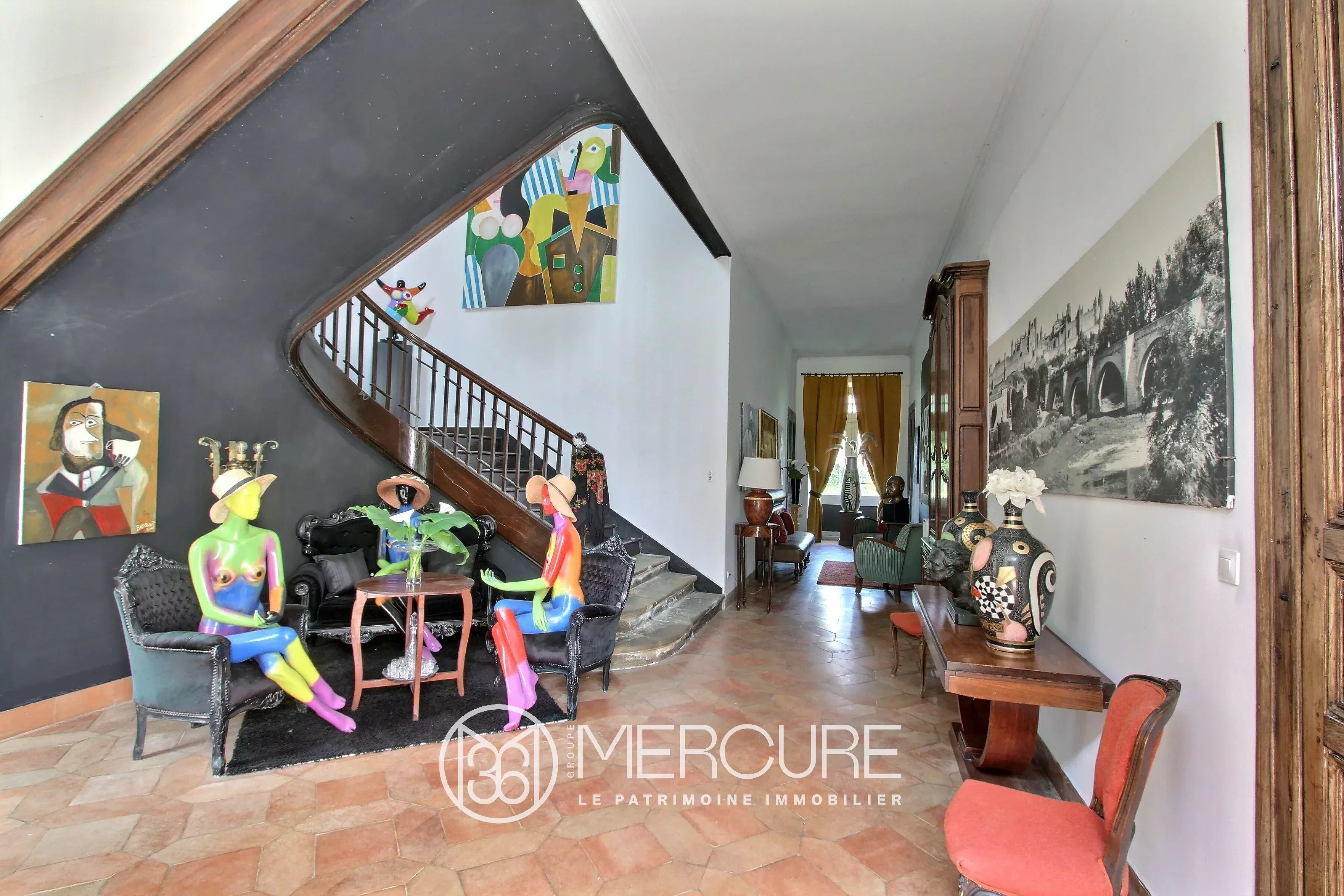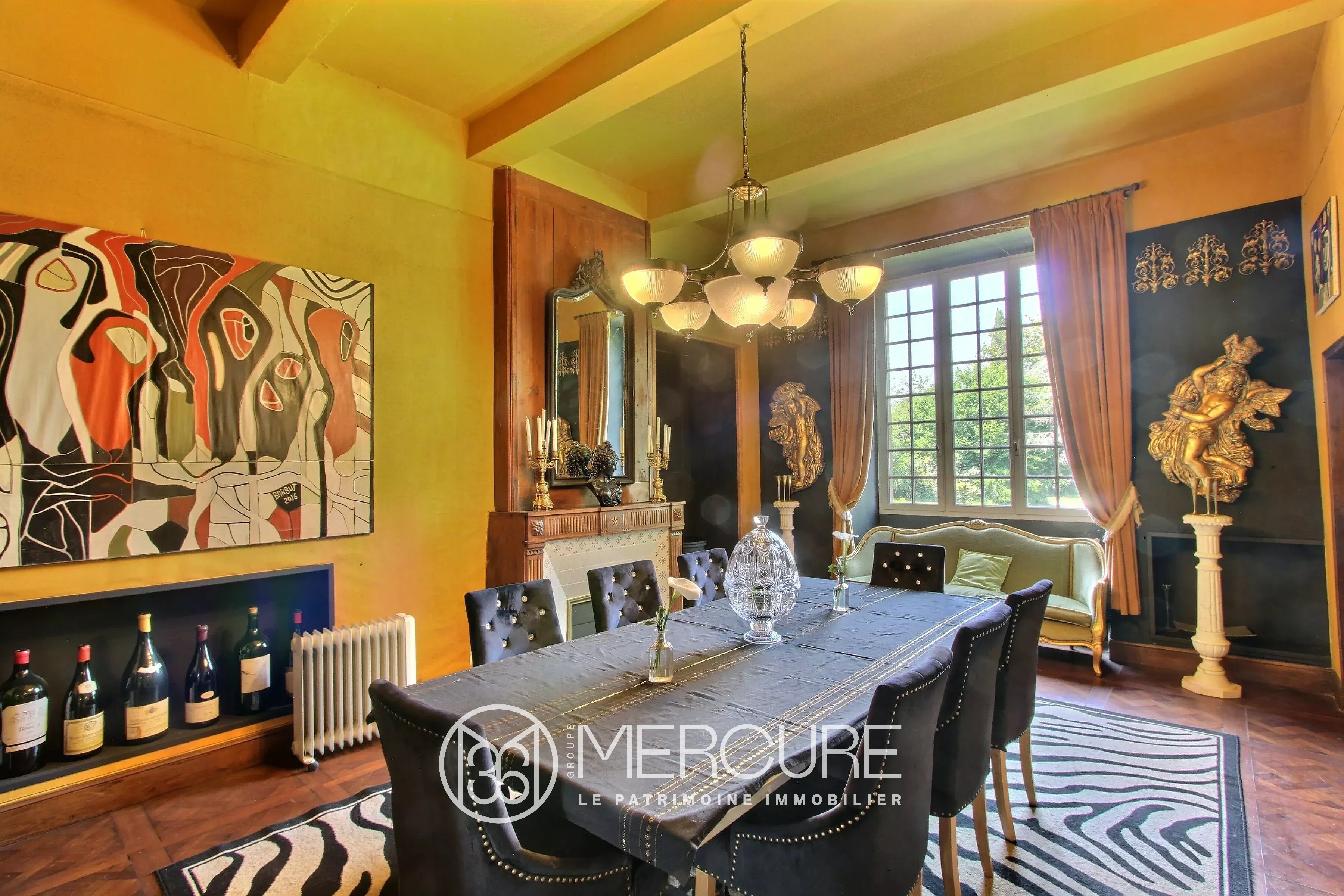Bel ensemble en excellent état, possédant de beaux éléments d’architecture (sols, plafonds, cheminées, escaliers, ect.) et de vastes volumes, en sortie d’un petit village sans nuisance. Il se trouve au sein d’un parc avec dépendance et piscine. Présence de beaux arbres.