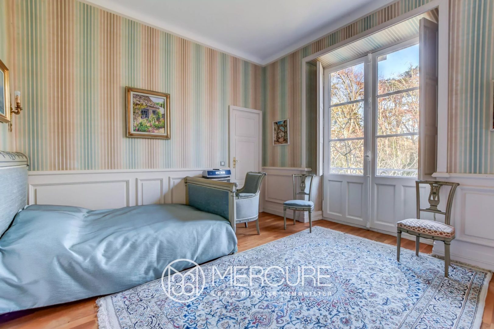 Implantée au cœur d’un magnifique parc arboré de 2,5 hectares, la propriété bénéficie d’une situation dominante orientée plein sud, avec piscine et pool house. La toiture Mansart en ardoise a été entièrement rénovée.