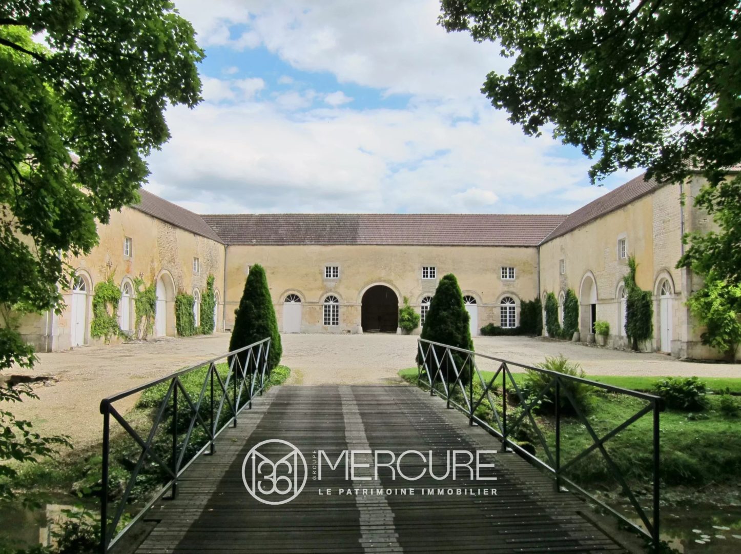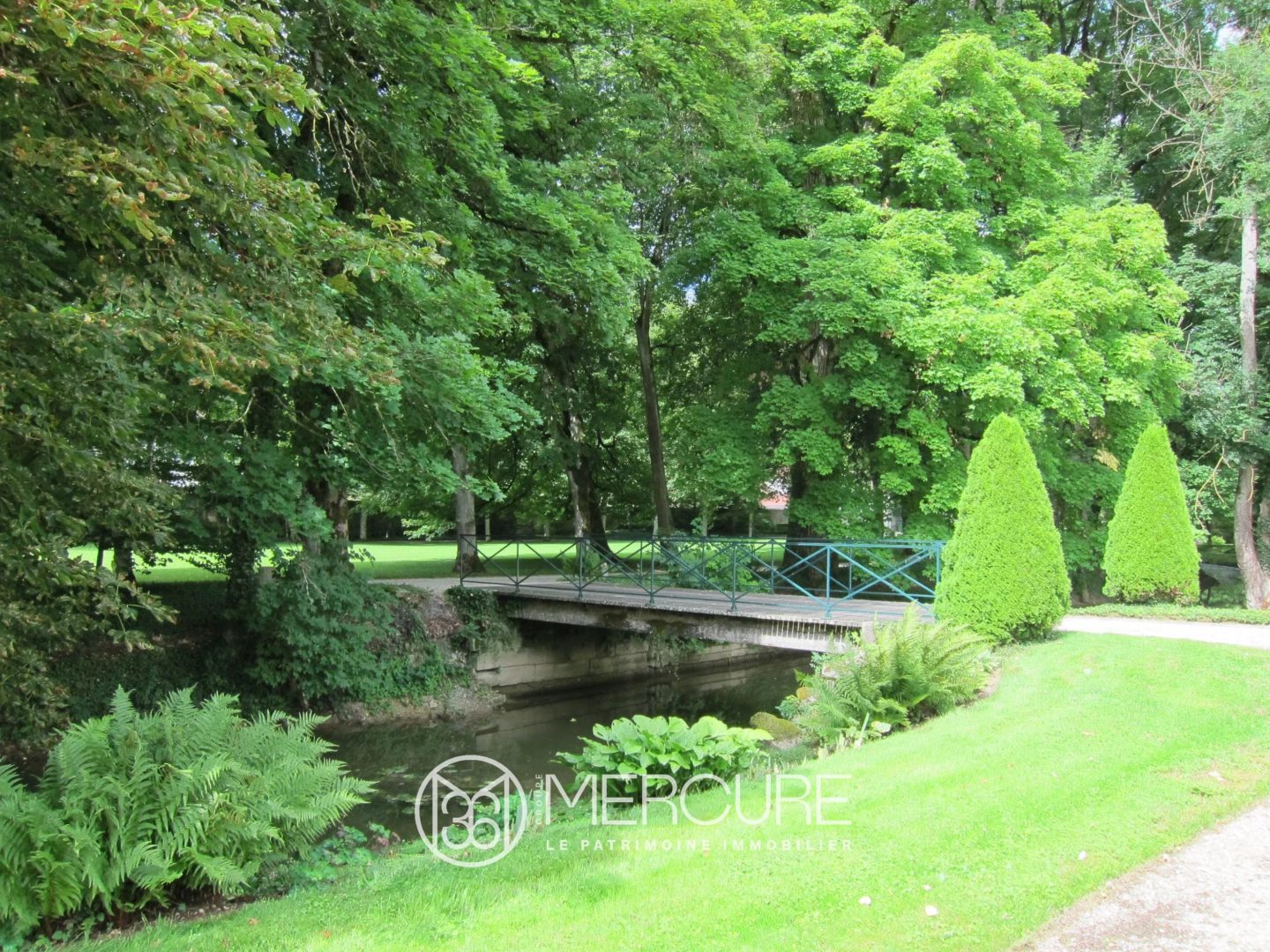 L’ensemble au coeur d’un parc d’environ 1,4 hectare arboré et clos de murs, traversé par un cours d’eau.