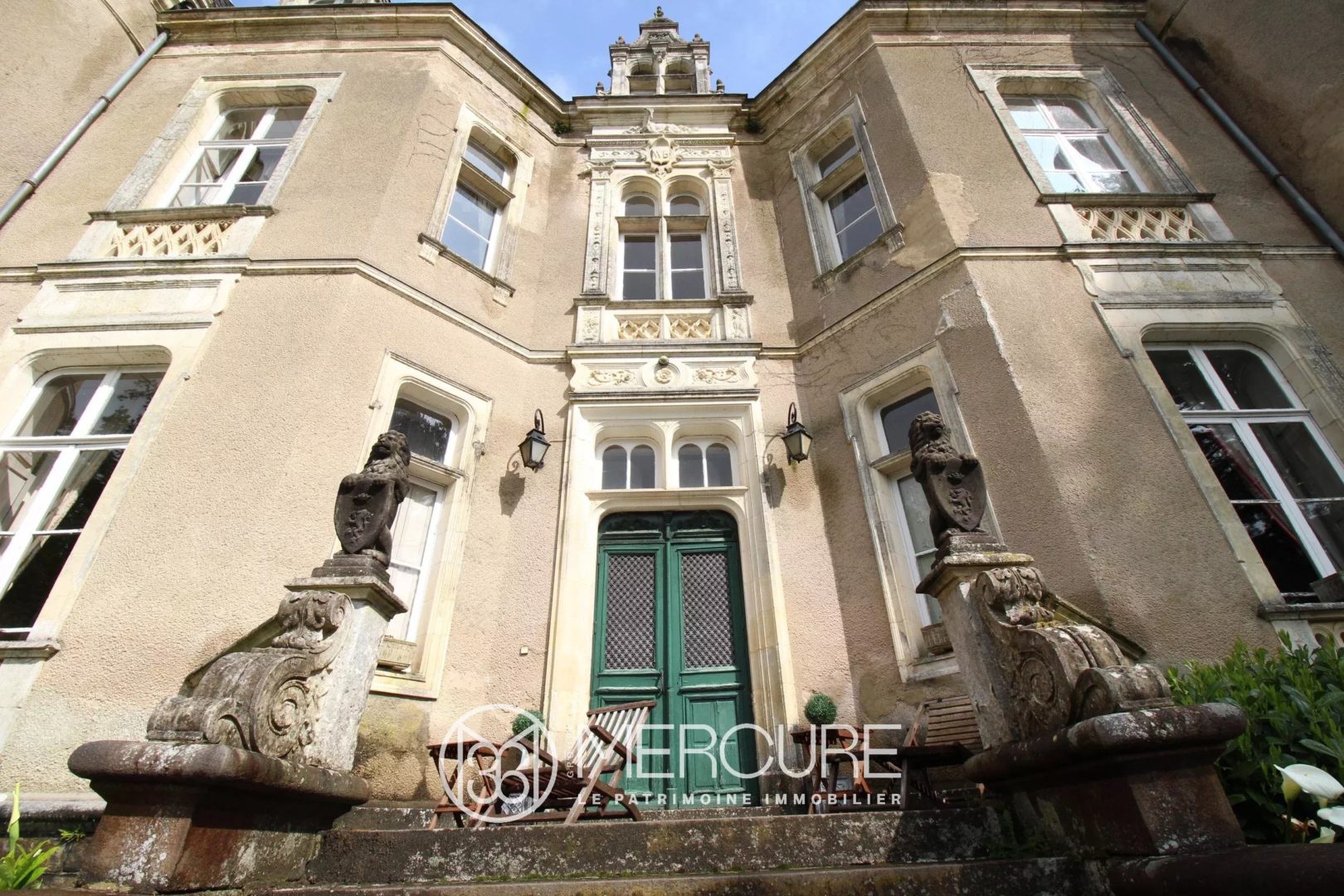 Ouvrant au Sud sa grande façade de style renaissance sur le vaste parc de 5.4 ha bordé par un bel étang, il a conservé le charme de ses décors extérieurs aux sculptures romantiques, et de la décoration raffinée des pièces de réception restées partiellement avec les tentures et rideaux d’époque.
