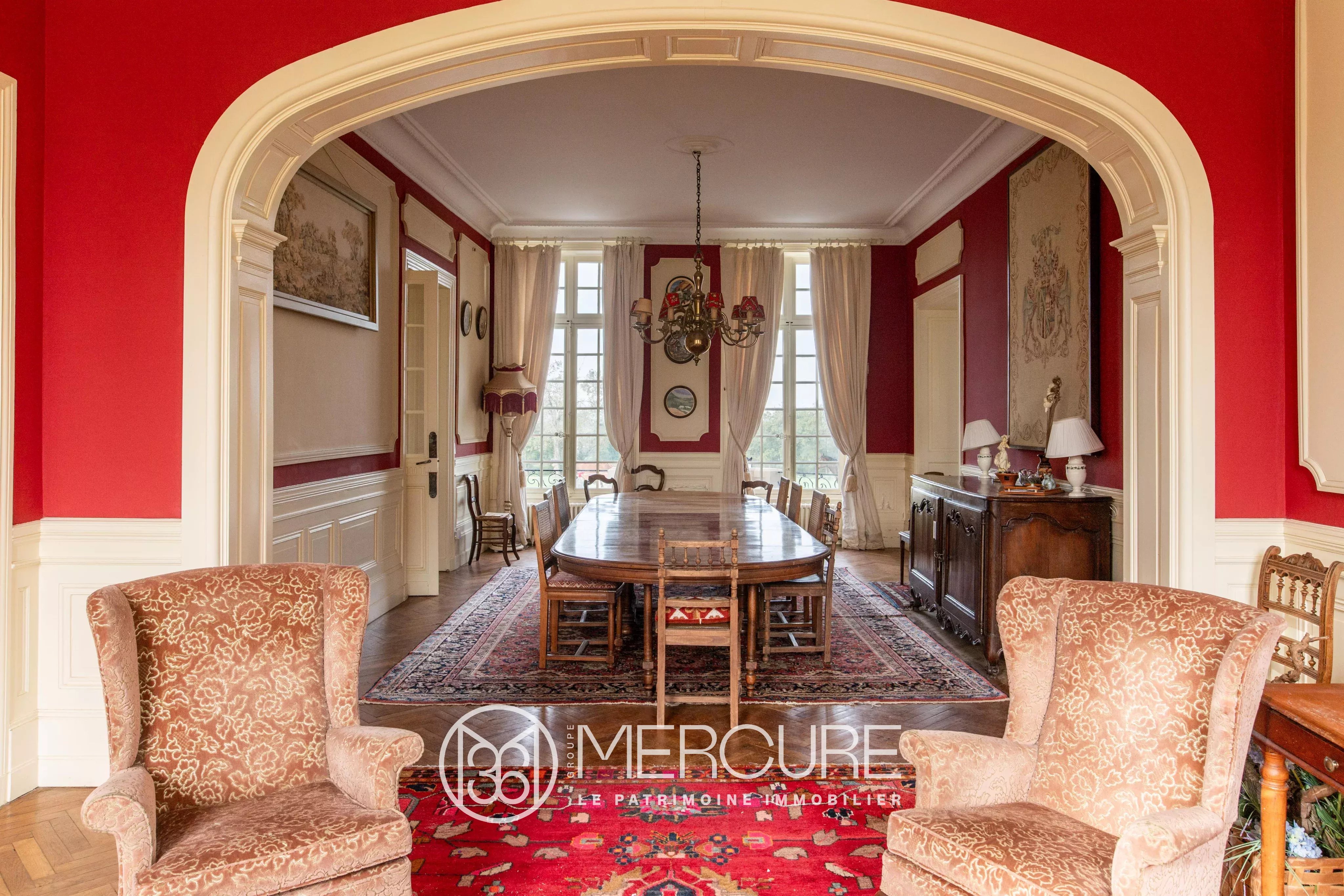 Le château, partiellement édifié sur caves, bénéficie de plusieurs accès de plain-pied et d’escaliers facilitant la desserte intérieure. Enfilade de réceptions au rez-de-chaussée, dix-sept chambres et nombreuses salles de bains en étage. Il est immédiatement opérationnel pour un usage privatif.