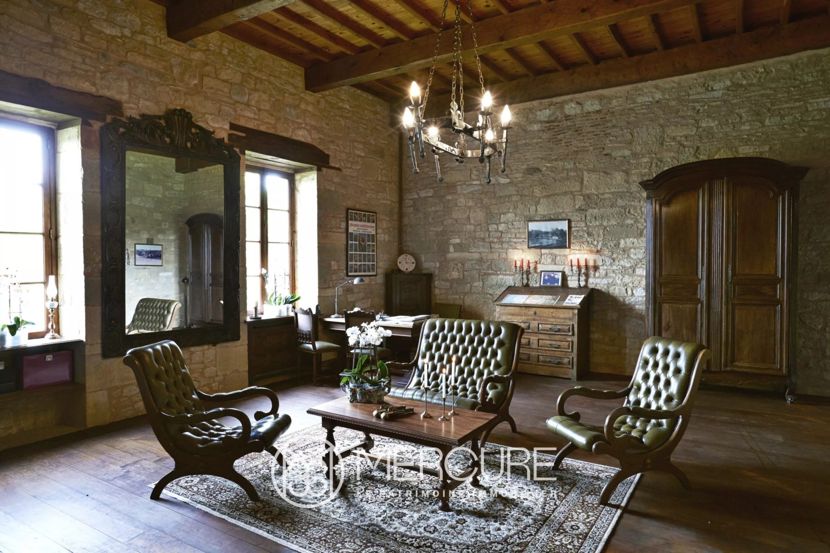 Il est composé de 15 pièces principales dont un majestueux salon de 61 m², une grande salle à manger, une superbe bibliothèque, une cuisine équipée, 10 chambres et de nombreuses belles autres pièces.
