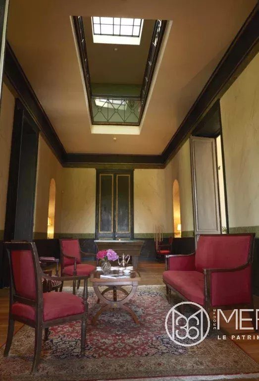 Au coeur d’un village du sud-est de la Marne, château néo-classique de style palladien édifié entre 1806 et 1812, d’environ 850 m² habitables sur 3 niveaux en 25 pièces principales dont de vastes réceptions et 6 chambres ou suites avec antichambre, toutes avec salles de bain ou douche privative. Superbes éléments : parquets, cheminées, lambris, décors… Péristyle, atrium, éléments typiques des villas palladiennes.