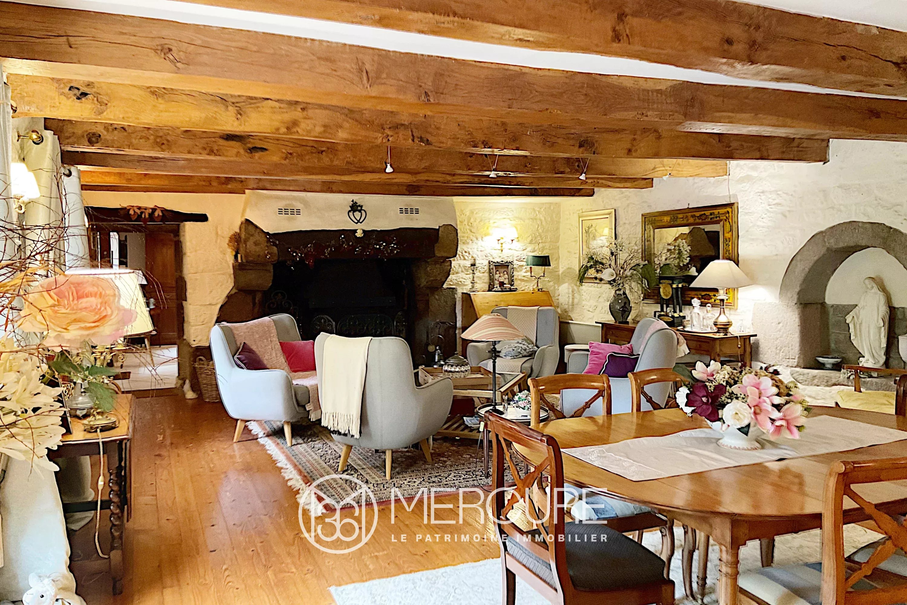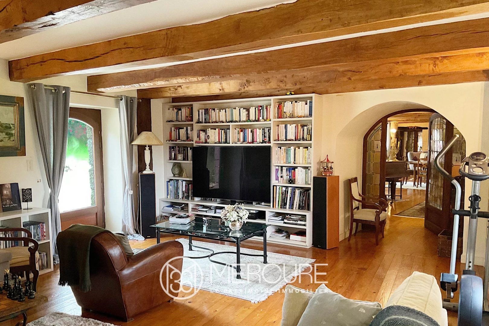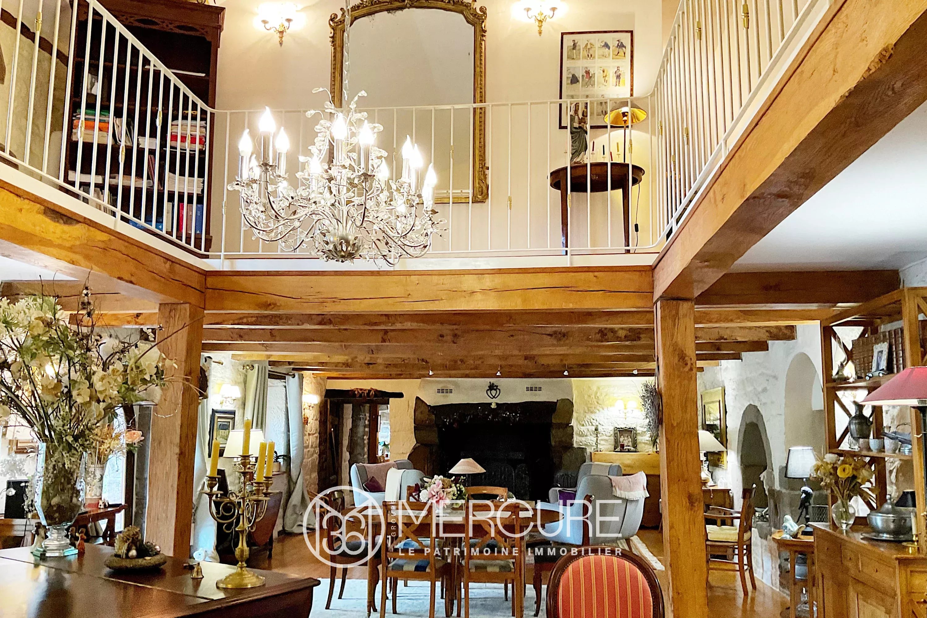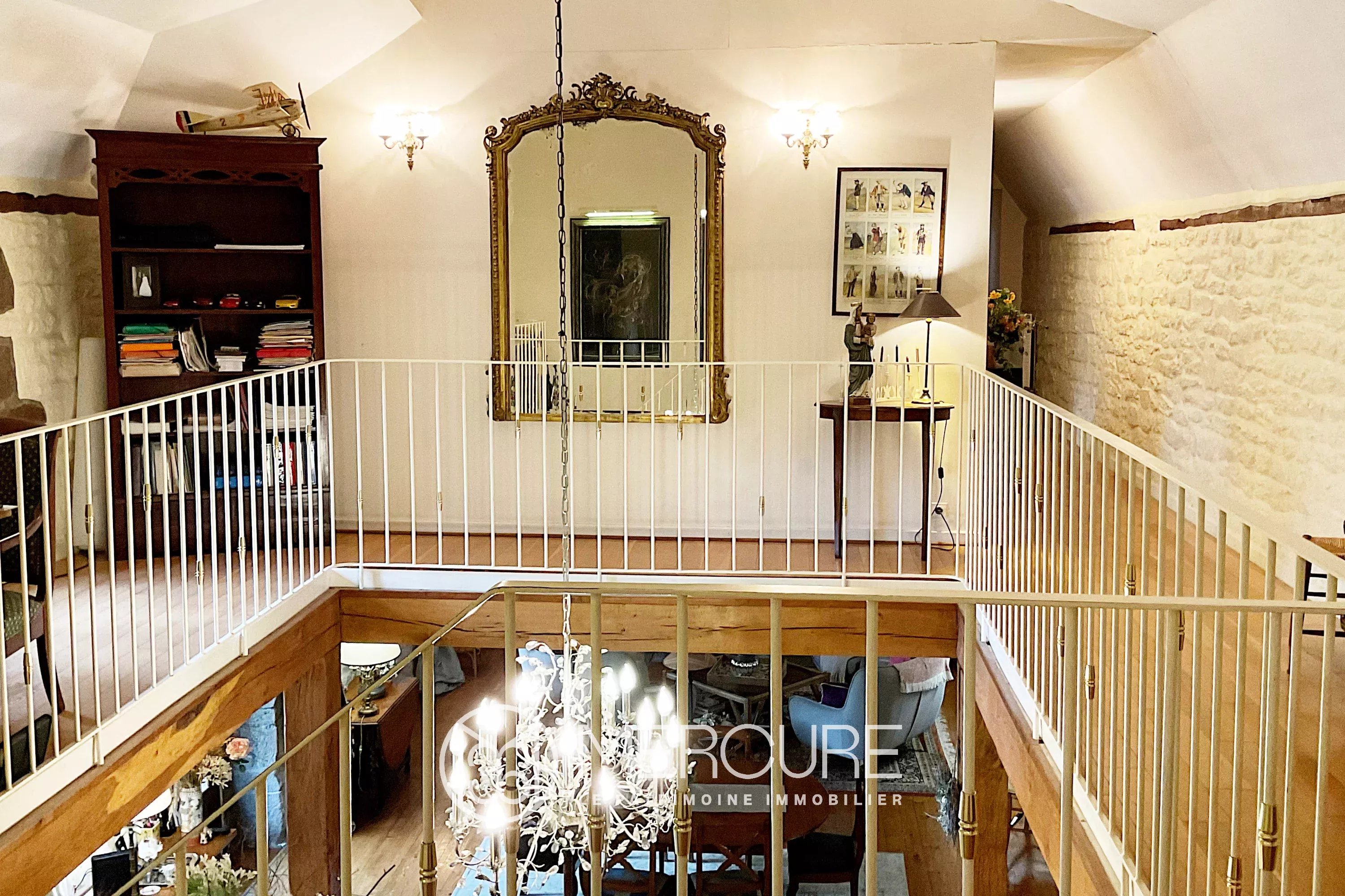 L’étage, accessible par un splendide escalier aux marches de bois traditionnelles donne sur une vaste mezzanine et distribue un ensemble de quatre belles chambres dont une « cathédrale » avec un accès extérieur à la terrasse en rez-de-jardin.