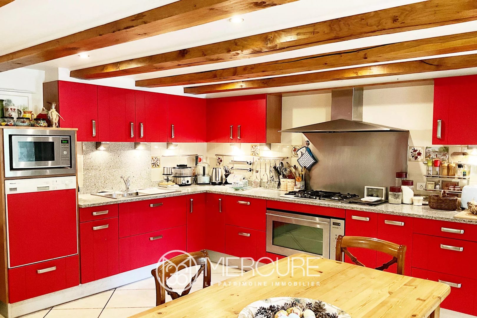 L’étage, accessible par un splendide escalier aux marches de bois traditionnelles donne sur une vaste mezzanine et distribue un ensemble de quatre belles chambres dont une « cathédrale » avec un accès extérieur à la terrasse en rez-de-jardin.