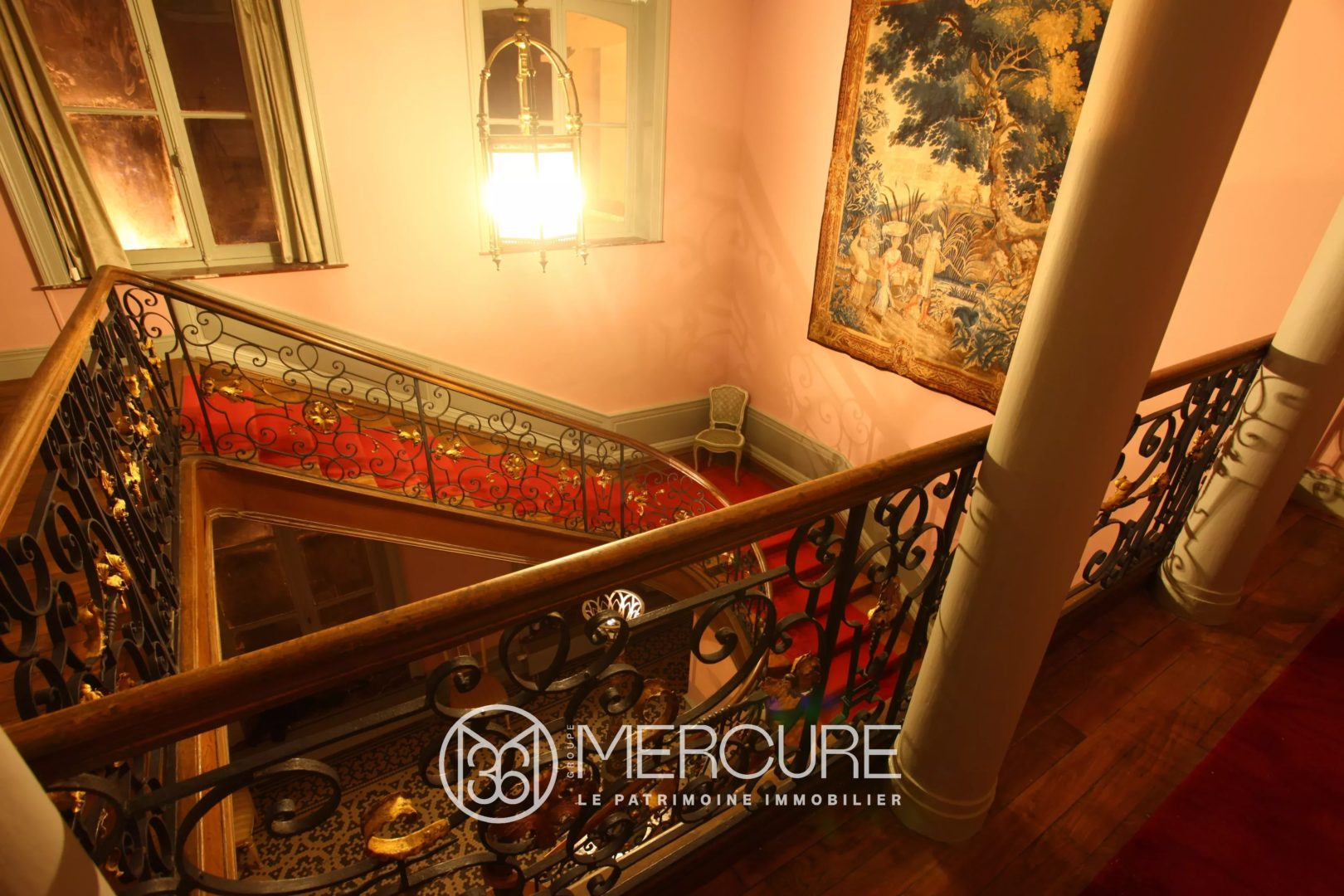 Accessible par un large perron le rez de chaussé se compose d’un grand hall d’entrée qui dessert plusieurs salons, une salle à manger, une cuisine, une buanderie.
