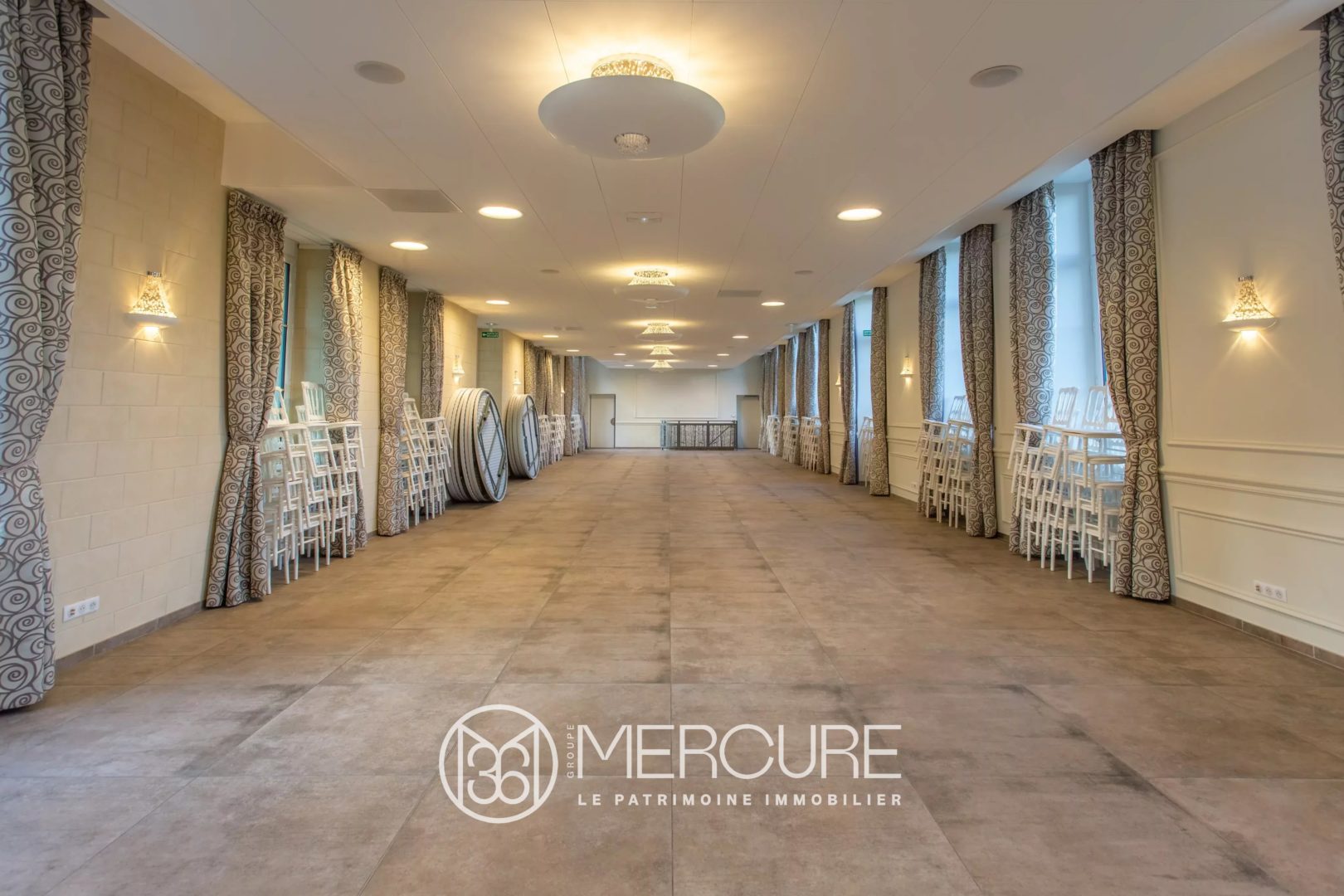 Vous disposerez également d’une salle de réception de 200 m², accompagnée d’une pièce vitrée de 100 m² ouvrant sur le parc.