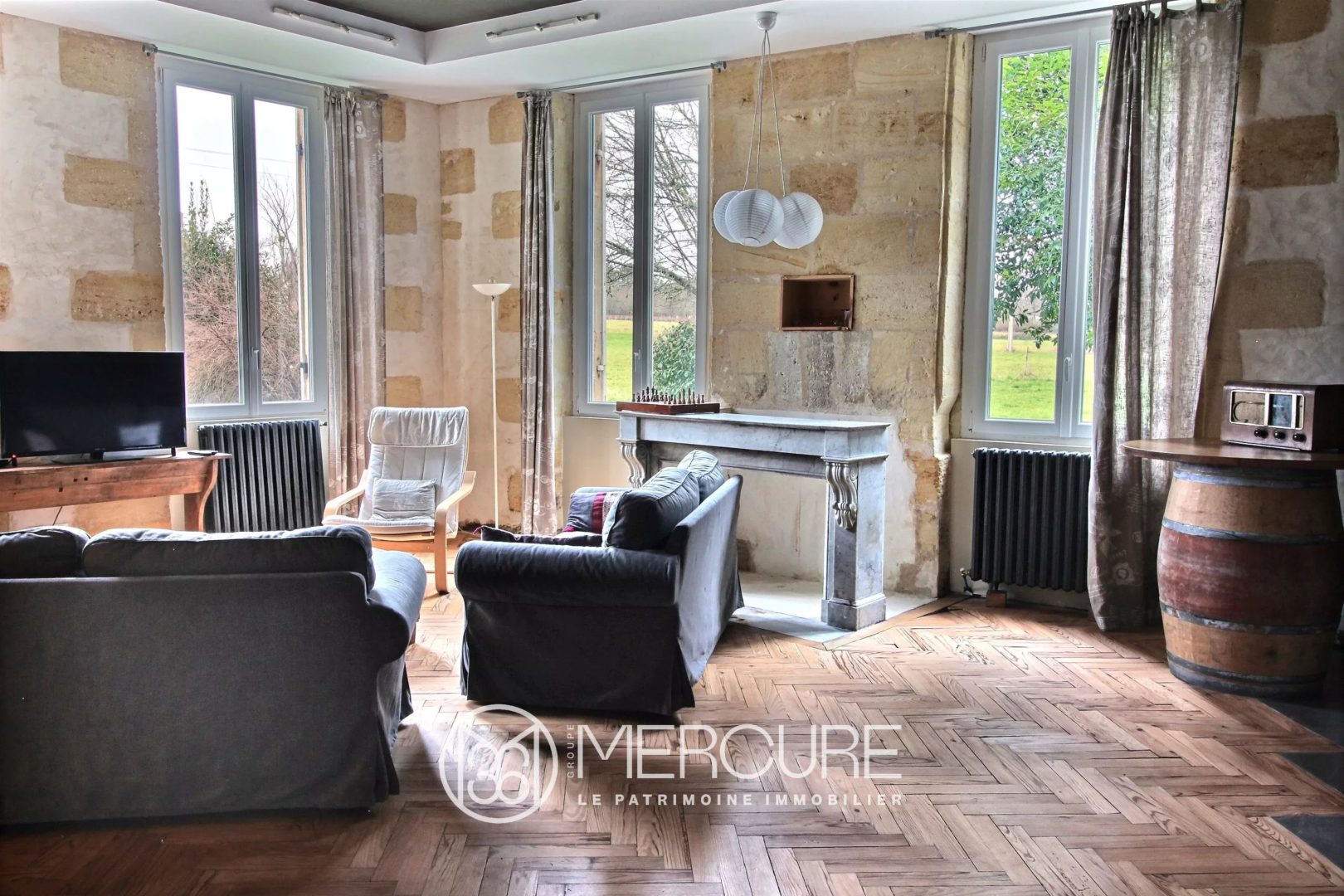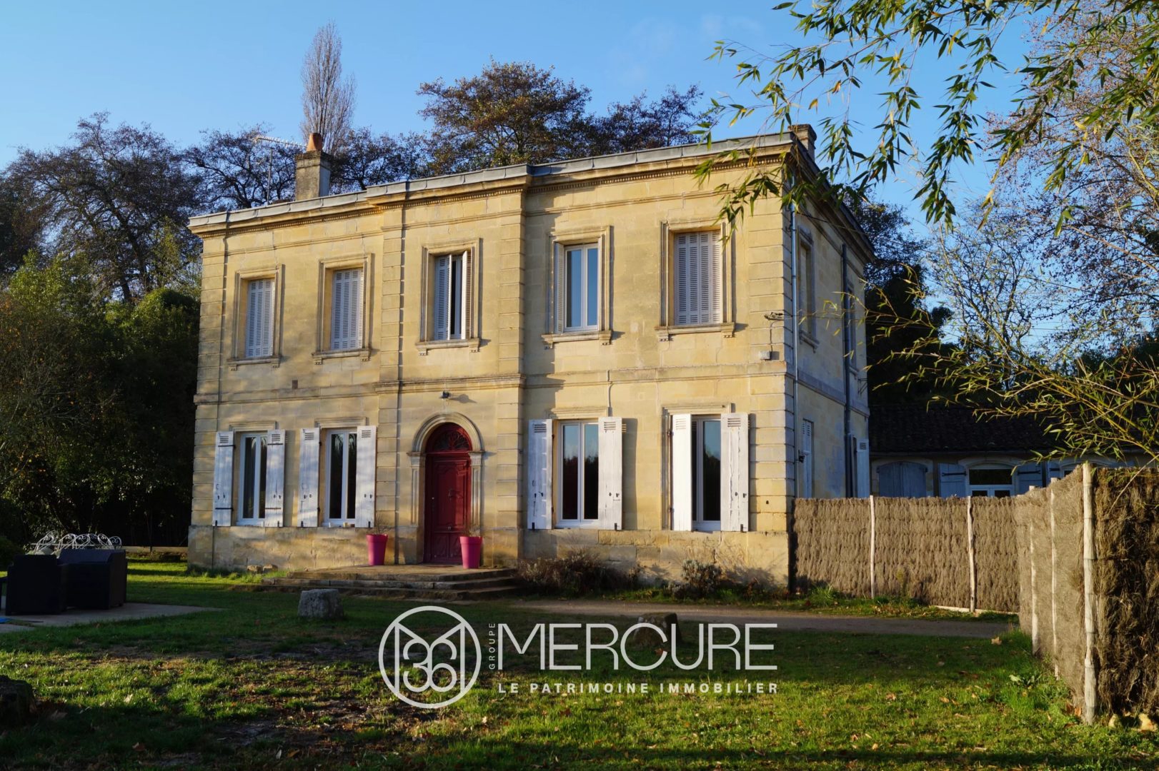 La maison est entièrement rénovée en conservant de nombreux éléments anciens ; le rez-de-chaussée offre un salon, une grande salle à manger et une troisième grande pièce de séjour, ainsi qu’une vaste cuisine. On trouve à l’étage, 3 belles chambres disposant chacune de sa salle de bain, ainsi qu’un dortoir ou salle de jeu mansardée. Une piscine de 11×5 m et un appartement indépendant de quatre pièces, pouvant être utilisé en gite ou maison de gardien complètent la propriété. L’emplacement est remarquable, à 20 minutes de Bordeaux, en pleine nature, mais avec toutes les commodités d’un bourg accessibles à pied.