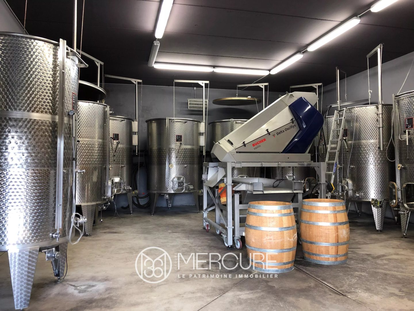 CAVE isolée non climatisée, cuves thermorégulées, groupe de froid, portail métal : 151m².