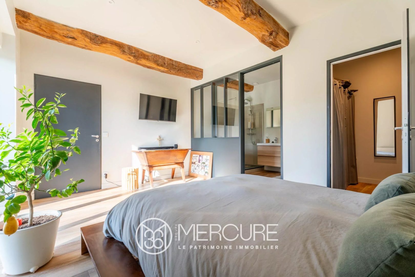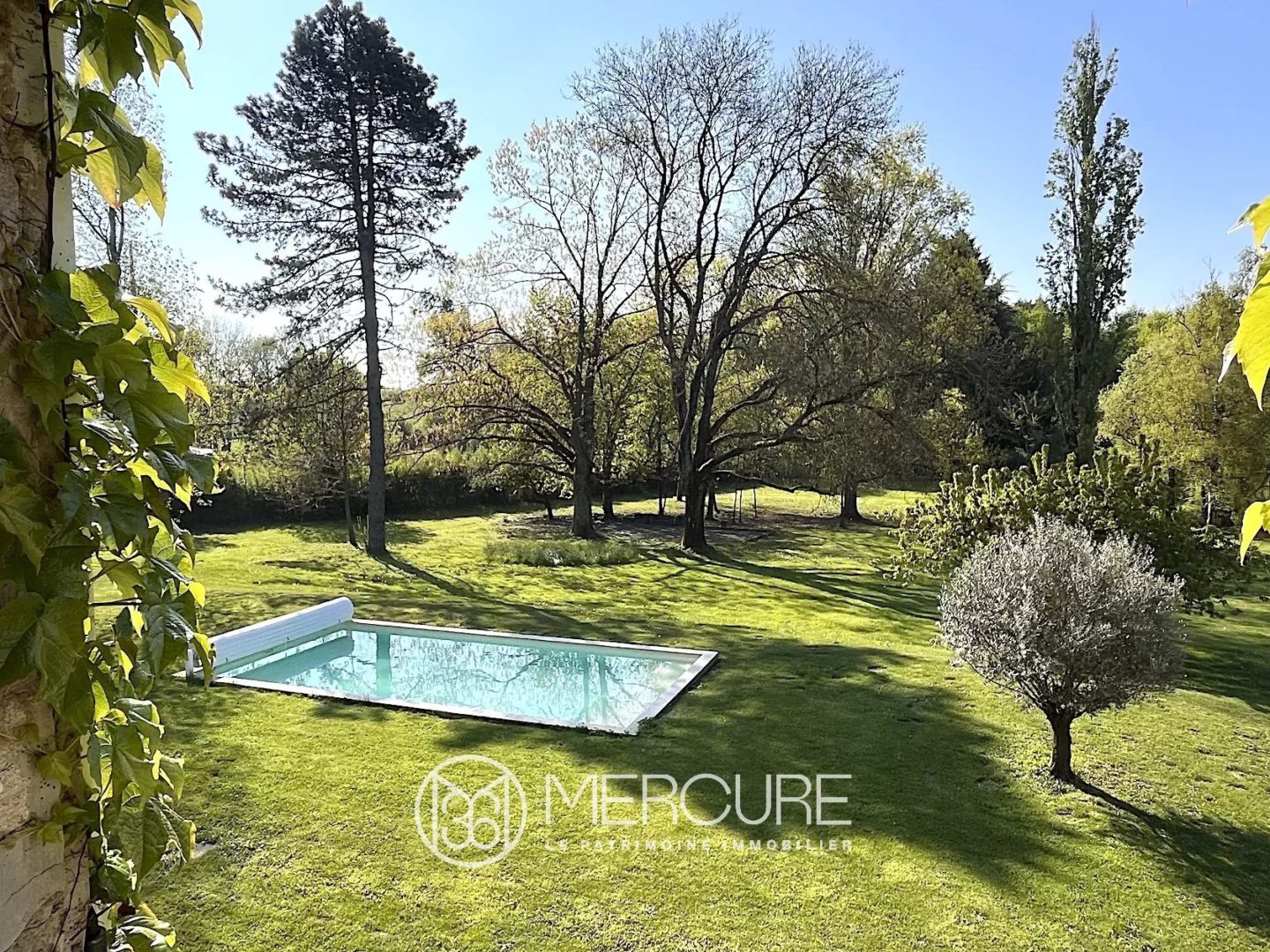 Le parc arboré comprend une piscine, une pergola, un terrain de pétanque, une mare et une grande terrasse plein sud.