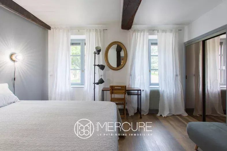 La bâtisse principale, d’environ 376 m² habitables, a bénéficié d’une rénovation de qualité, respectueuse du caractère originel : volumes généreux et harmonieux, pièces de réception lumineuses, vaste hall d’entrée, cuisine familiale, bureau et six chambres confortables. Chaque espace a été pensé pour offrir confort, authenticité et fonctionnalité.