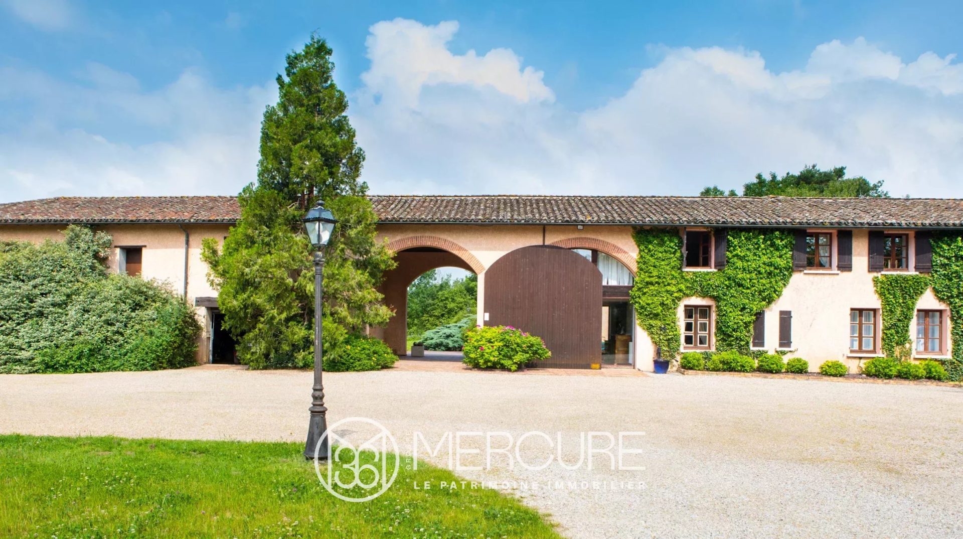 À proximité du centre de Châtillon-sur-Chalaronne, au sein d’un écrin naturel parfaitement préservé, cette remarquable ferme bressane du XIXᵉ siècle déploie toute sa noblesse sur près de 5,8 hectares de parc et prairies. Le domaine s’ouvre par une majestueuse allée de cèdres de 160 mètres et se distingue par la présence de chênes centenaires qui instaurent une ambiance unique, empreinte de sérénité et d’élégance rurale.