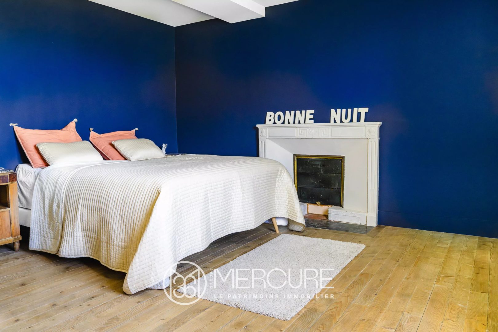 La rénovation intérieure a su respecter l’âme du bâti : parquets d’époque, carreaux de ciment, tomettes, cheminées et moulures côtoient aujourd’hui une atmosphère chaleureuse et contemporaine.