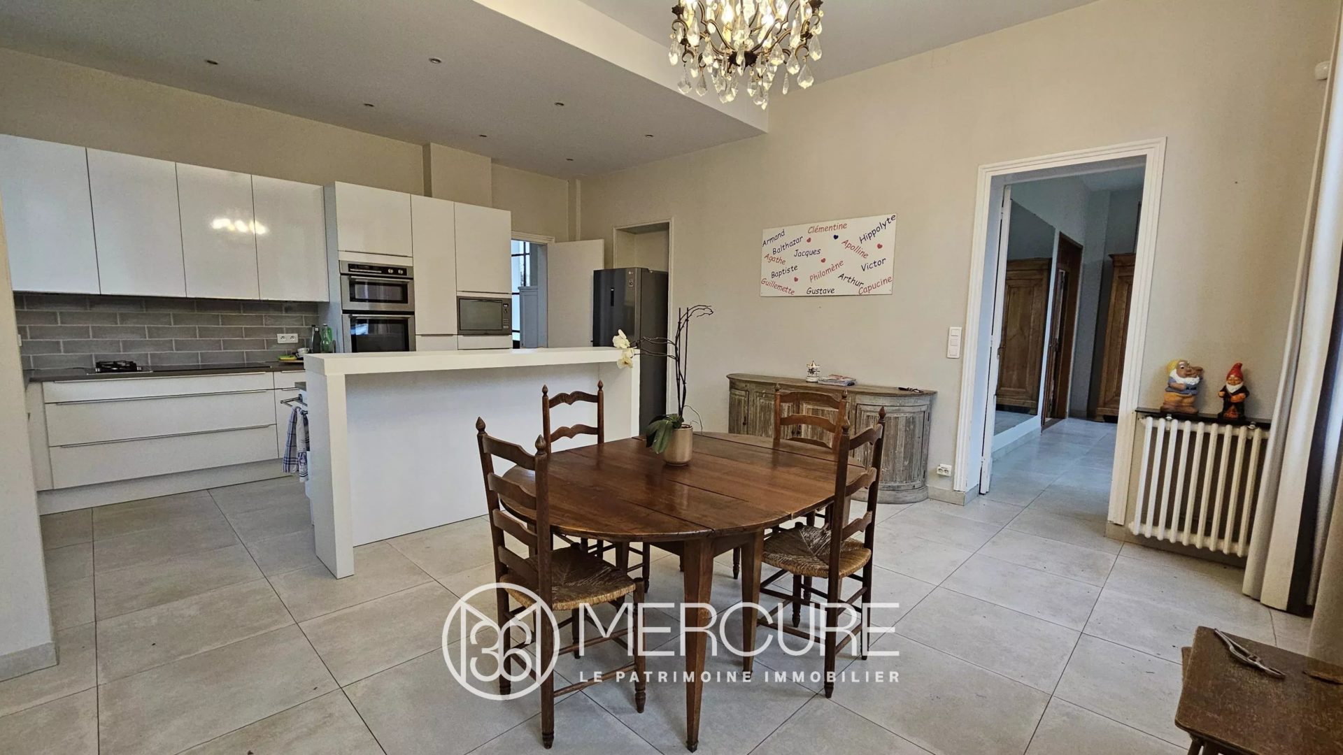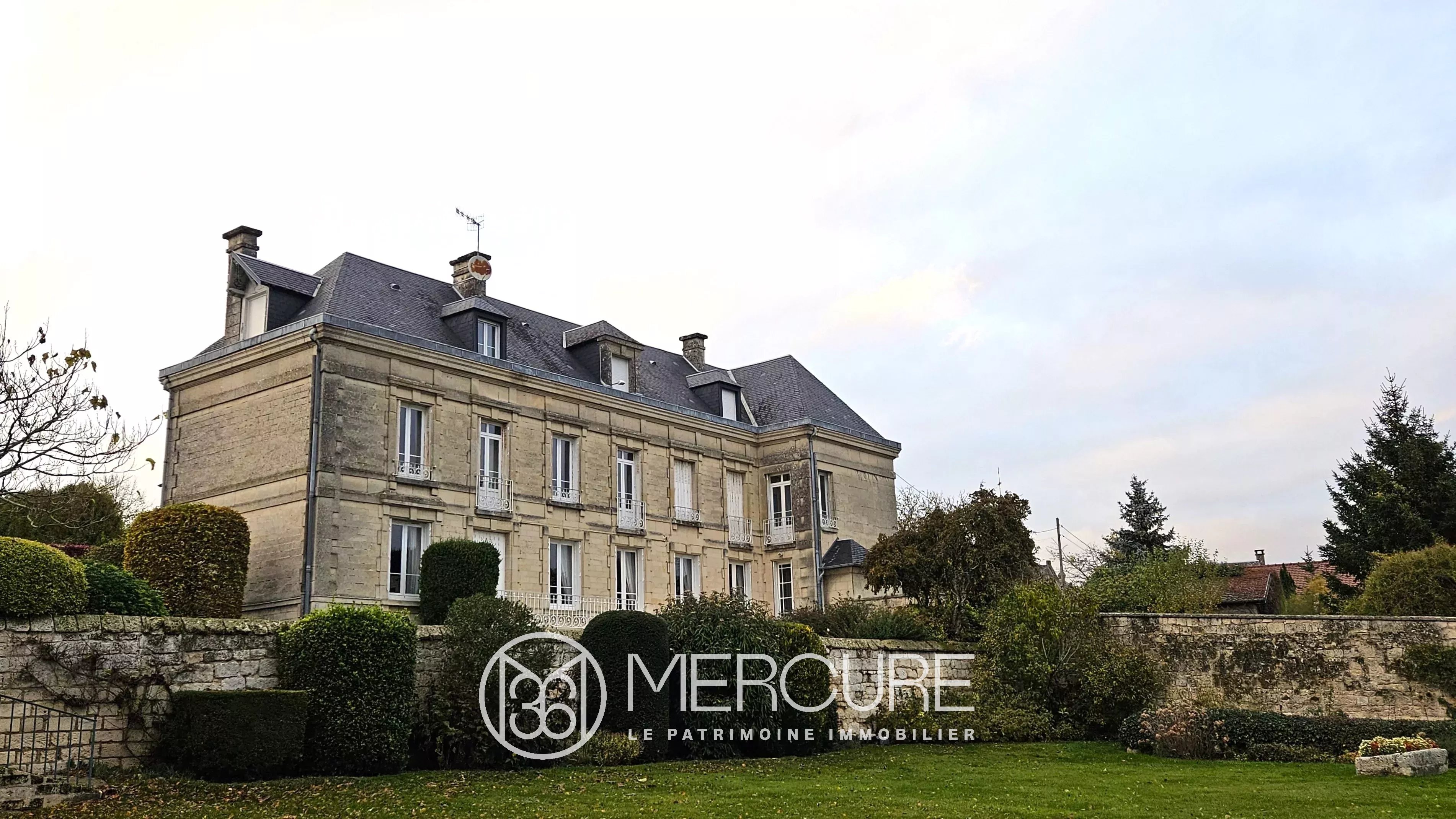 A proximité de Soissons, bénéficiant d’une position dominante et d’un panorama exceptionnel, demeure construite en pierre de taille, offrant 420m² habitables en trois niveaux.