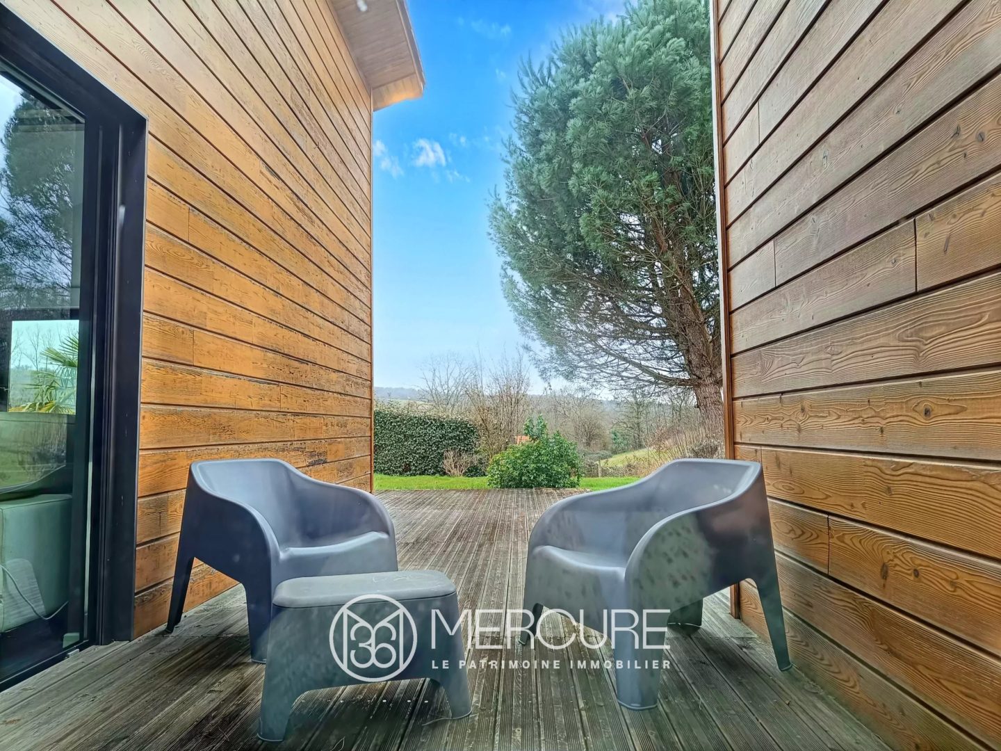 Située dans un cadre verdoyant, entourée de collines et de forêts, cette maison de plain-pied d’environ 250 m² offre une vue imprenable.