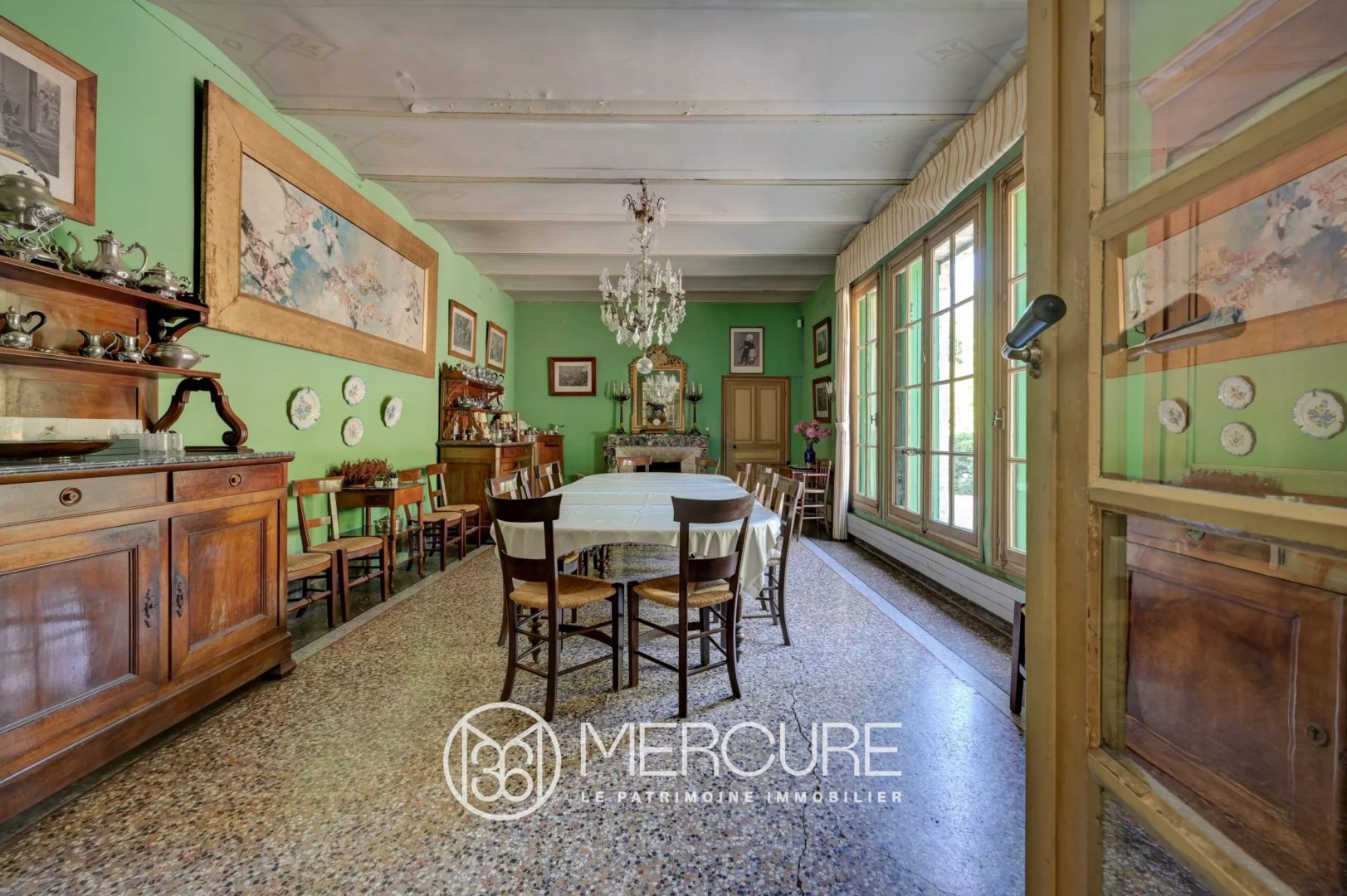 La Maison de Maître traversante entre cour d’arrivée et parc ,environ 400 m² habitables et 14 pèces principales sur deux niveaux .Exposition Est (cour) Ouest (parc).