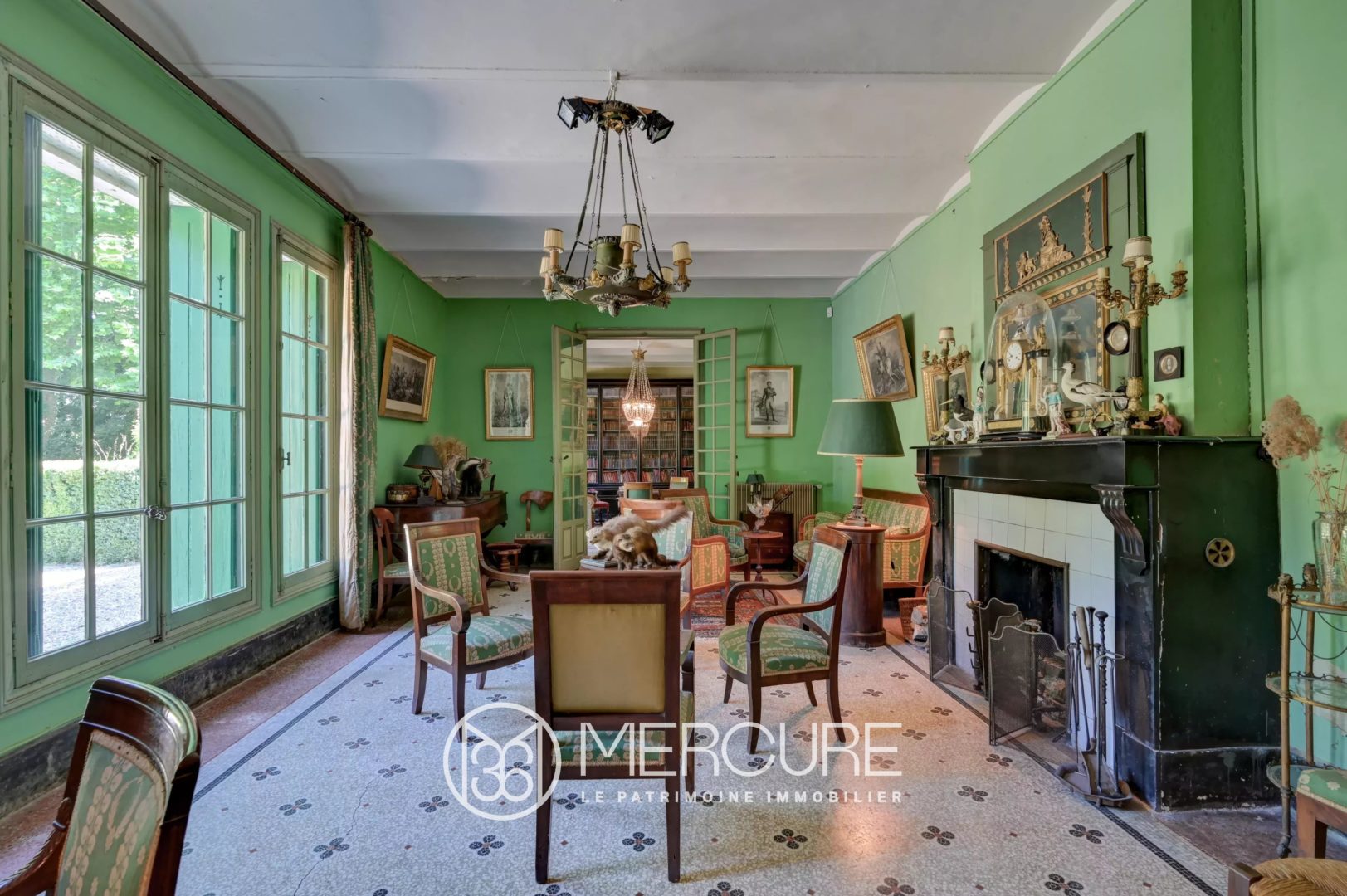 Côté parc : salle à manger, salon et bibliothèque en enfilade formant une réception de près de 120m².
