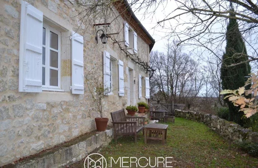 Ensemble implanté dans un hameau gersois, sur 8900 m² de parc en restanques. Bucher, car-port.