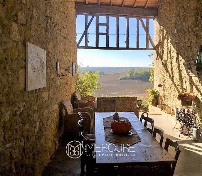 Maison parfaitement rénovée 240m² construite sur les remparts d’un village avec vue imprenable sur la chaine des Pyrénées. 7 pièces principales dont belles pièces de réception, grande cuisine/salle à manger de 45 m², vaste bibliothèque, 4 chambres. Beaux éléments anciens, cheminées.