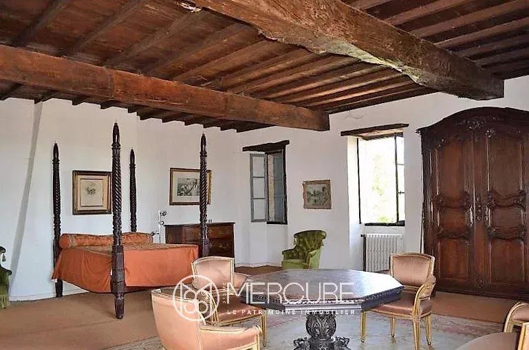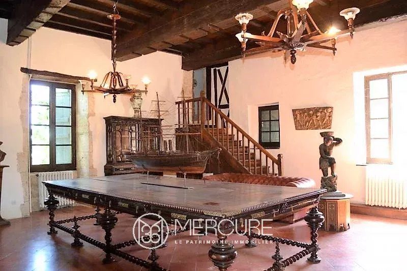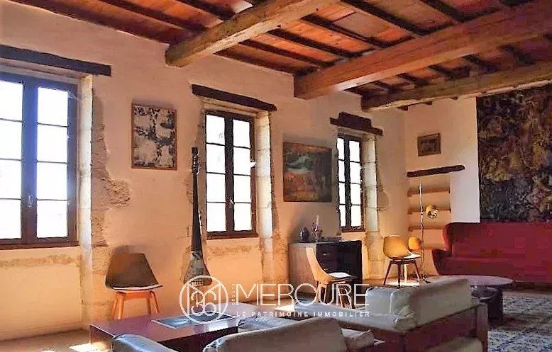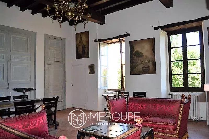 A VENDRE – GERS MIRADOUX Dans un village médiéval située sur les chemins de Compostelle, ancienne commanderie templière lumineuse de 350 m² habitables, rénovée avec gout et ayant conservé ses éléments darchitecture dont pierres, tommettes, poutres, cheminée et escalier en bois du XVe. Dépendances à rénover et joli jardin dans un lieu sans nuisance.PARTIE PRINCIPALERez-de-chaussée : – Entrée avec arche en pierre- Pièce de 56 m² avec un sol en pierre et terre battue- Pièce de 51 m²- Cave à vin- Débarras, chaufferie (gaz) et wc.1er étage :- Cuisine 20m², avec tomettes- Séjour 37 m², avec placards muraux poutres et tomette- Couloir de 14m², tomettes- Chambre de 20m², tomettes- Salon de 56 m², cheminée, poutres, tomettes, donnant sur une tour du XII ème- Chambre de 14m²- Salle de bain et wc- Large terrasse suspendue et couverte orientée ouest accessible depuis le couloir2ème étage :- Chambre de 62 m²- Pièce de 25 m²- Salle de 14 m² avec wc- Salon de 46 m² avec cheminée- Pièce de 55 m² – Pièce de 26 m² dans la tourPARTIE A RENOVER du XIXème siècle avec entrée indépendante- 5 pièces de 10, 22, 22, 24 et 25 m²- Réserve de 17m²- 2 pièces de 16 et 28 m² avec cheminées et tomettesUn élégant jardin à la française, clos de murs, avec danciens garages à calèches agrémentent cet ensemble possédant une remarquable architecture (pierres, colombages, tour carrée, ronde). Conviendrait pour une résidence principale ou secondaire ou encore pour une activité touristique. La surface habitable immédiatement est denviron 350m² avec 200 m² à rénover.