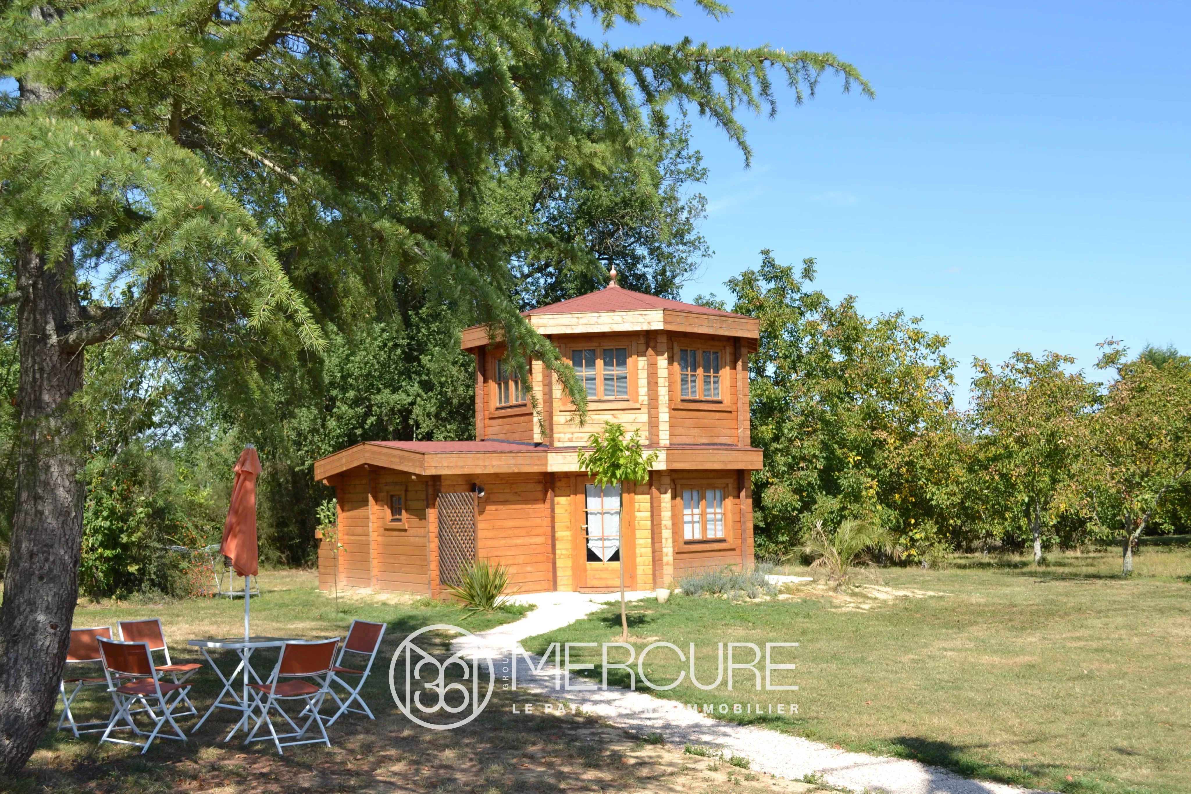 L’emprise foncière de plus de 4 hectares, dont la moitié est constructible. Il y a un puits et une mare et 26 panneaux solaires sur la propriété.